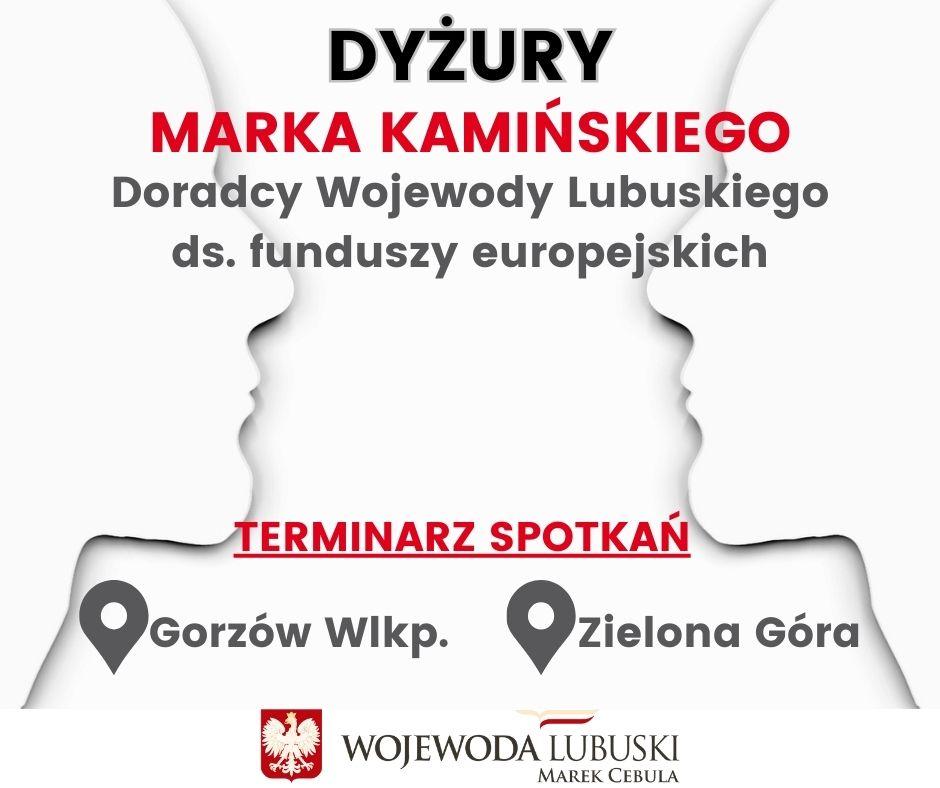 Spotkania z Markiem Kamińskim, Doradcą Wojewody Lubuskiego ds. funduszy europejskich odbędą się wg poniższego harmonogramu: