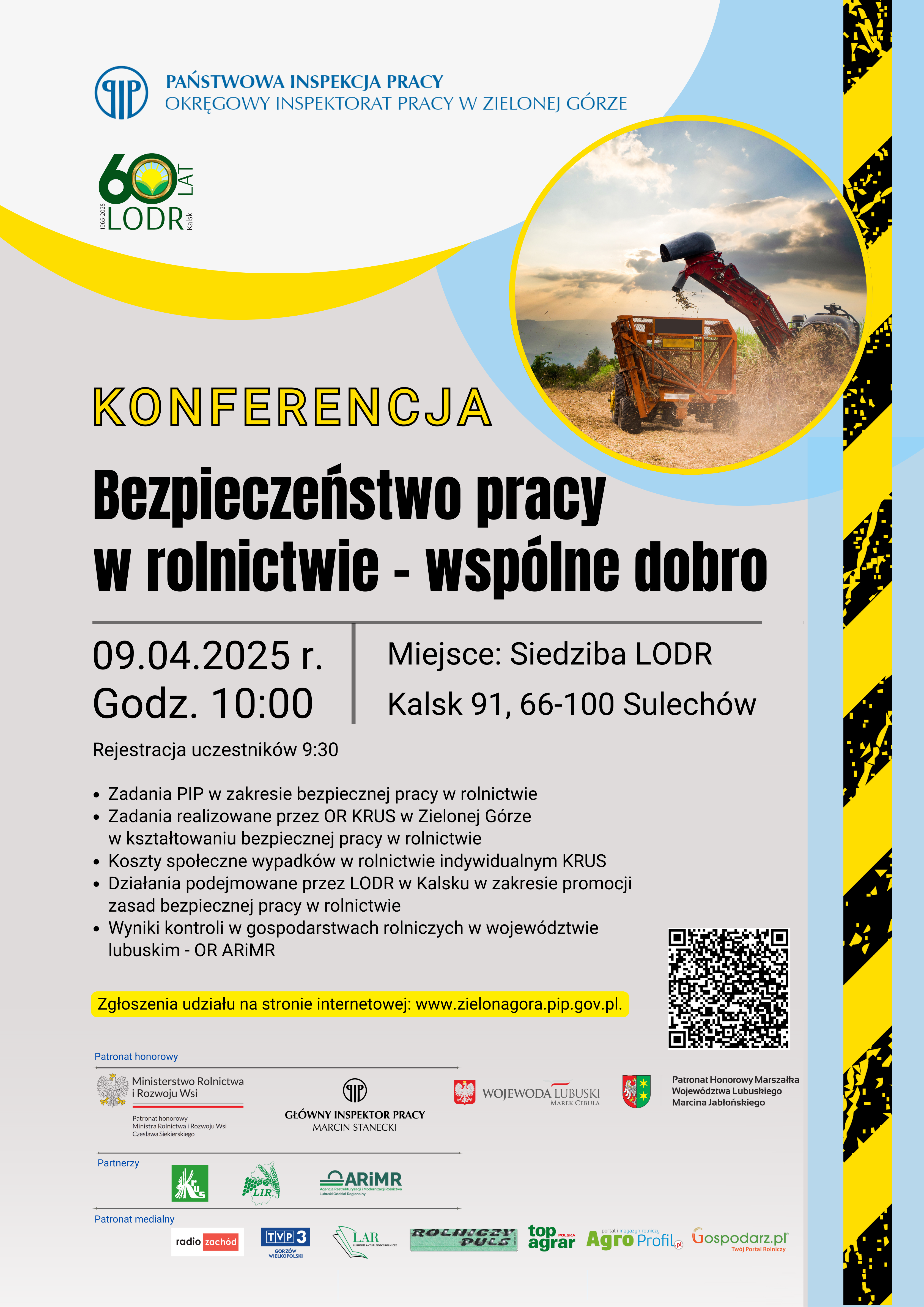 Konferencja została objęta patronatem honorowym Ministra Rolnictwa i Rozwoju Wsi Czesława Siekierskiego, Głównego Inspektora Pracy Marcina Staneckiego, Wojewody Lubuskiego Marka Cebuli oraz Marszałka Województwa Lubuskiego Marcina Jabłońskiego.