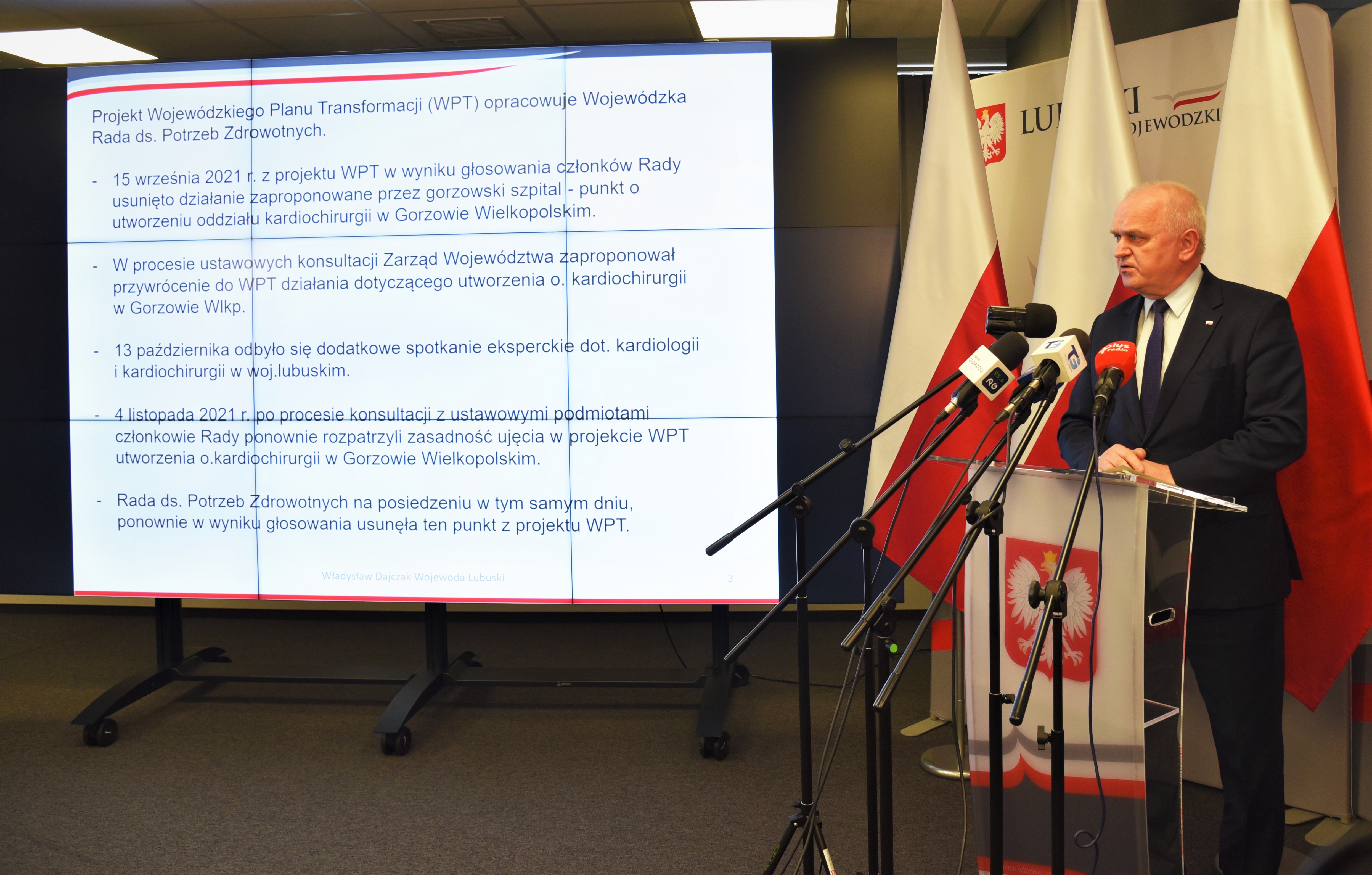 Konferencja prasowa nt. Wojewódzkiego Planu Transformacji i utworzenia kardiochirurgii w Gorzowie Wlkp. zorganizowana została w odniesieniu do konferencji marszałka województwa lubuskiego Elżbiety Polak z 20 stycznia 2022 roku.