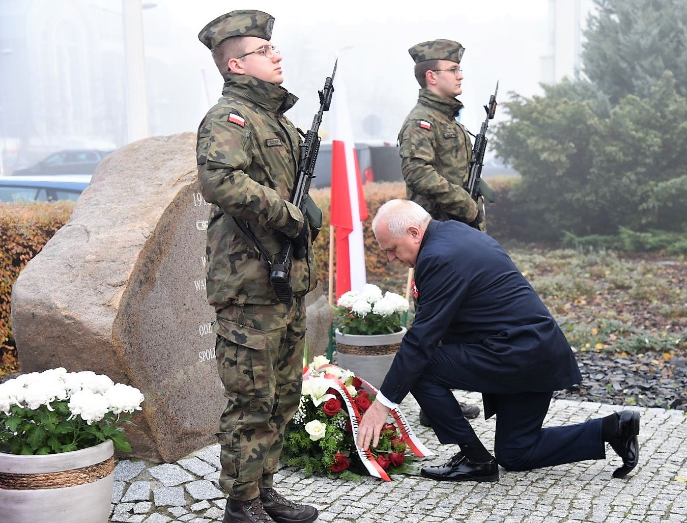 Jeszcze przed rozpoczęciem mszy świętej w intencji Konkatedrze wojewoda wraz z małżonką i delegacjami udał się na plac Jana Matejki by złożyć kwiaty pod Pomnikiem 100-lecia odzyskanej Niepodległości. W tym samym czasie wicewojewoda, w towarzystwie pełnomocników Wojewody Lubuskiego złożył kwiaty pod tablicą Pro Memoria więźniom politycznym i represji komunistycznych umieszczonej przy Areszcie Śledczym.