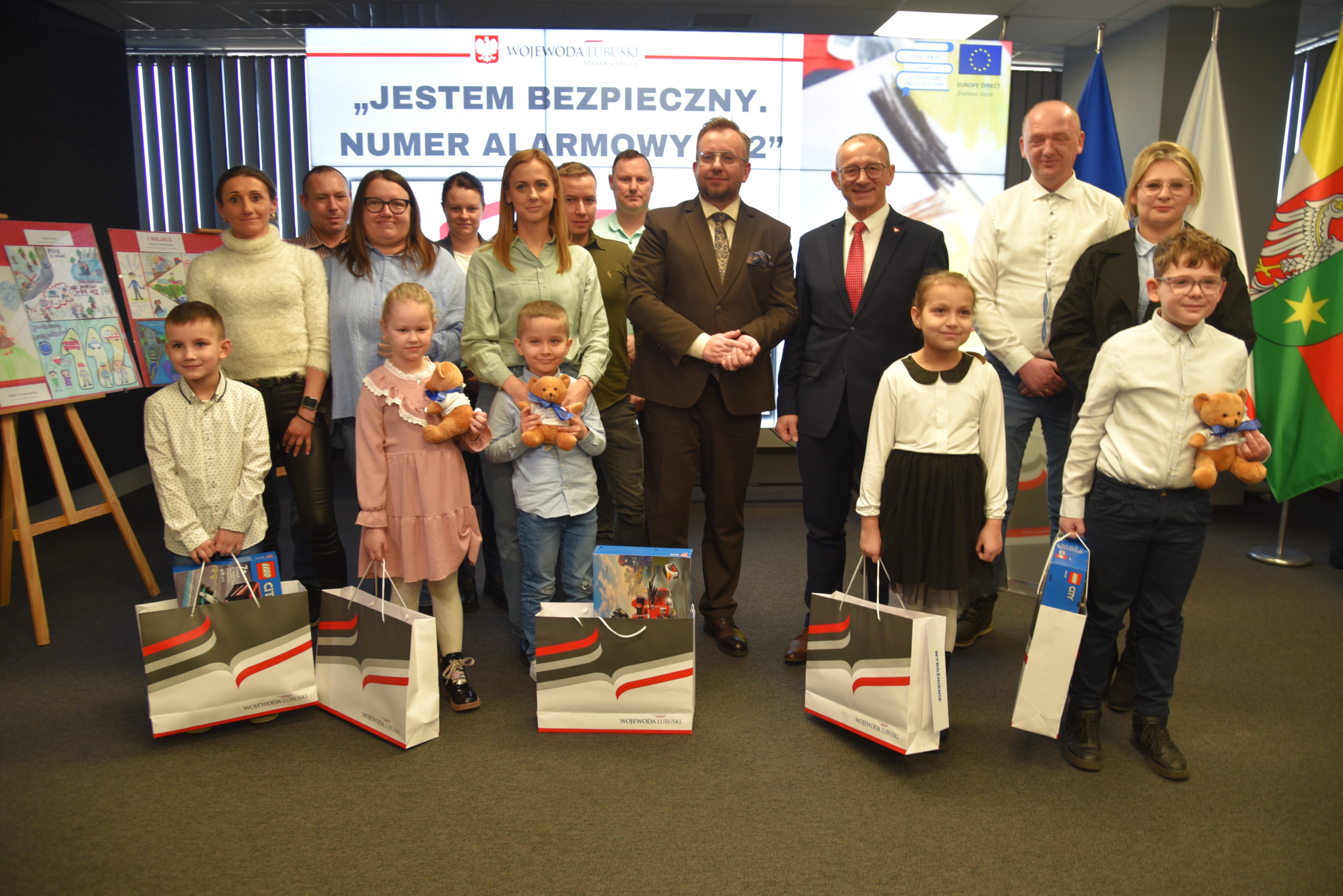 Podczas uroczystości wręczono także nagrody laureatom konkursu „Jestem bezpieczny. Numer alarmowy 112”, organizowanego przez Wojewodę Lubuskiego. Lubuskiego Kuratora Oświaty oraz Punkt Europa Direct w Zielonej Górze. Konkurs miał na celu promowanie wiedzy o numerze alarmowym wśród dzieci i młodzieży.