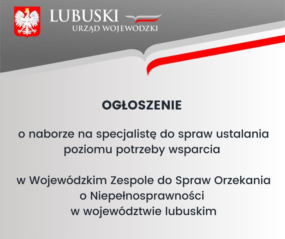 Ogłoszenie o naborze specjalistów do spraw ustalania poziomu potrzeby wsparcia w Wojewódzkim Zespołu do spraw Orzekania o Niepełnosprawności w województwie lubuskim