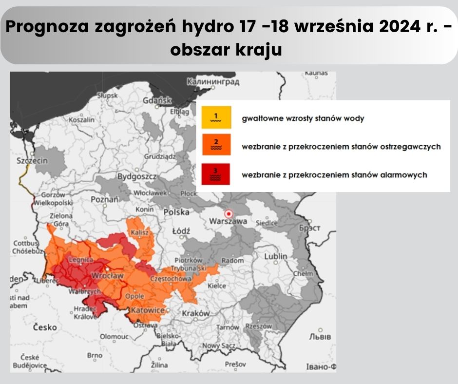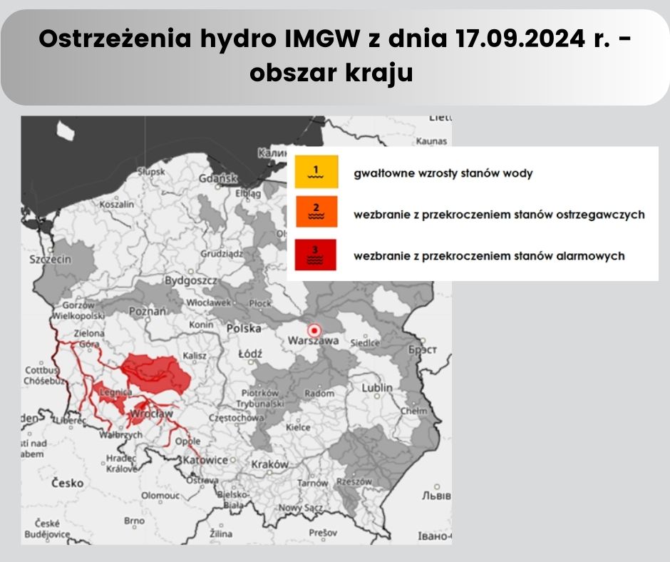 W dniu 17 września 2024 r. obowiązują ostrzeżenia hydrologiczne: