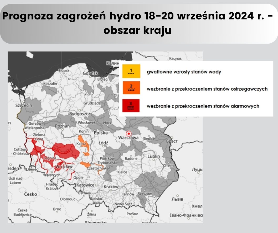 W dniu 18 września 2024 r. obowiązują ostrzeżenia hydrologiczne: