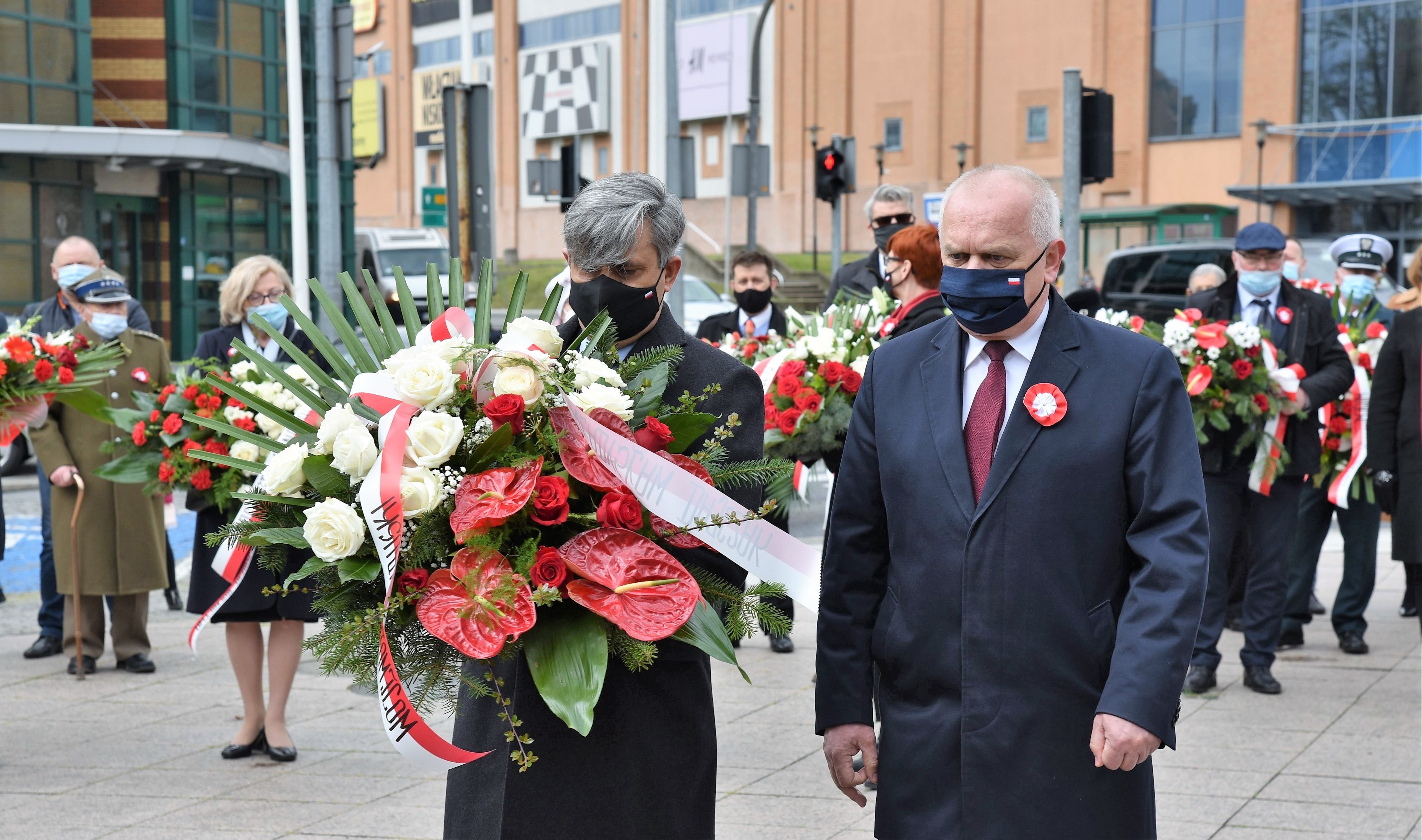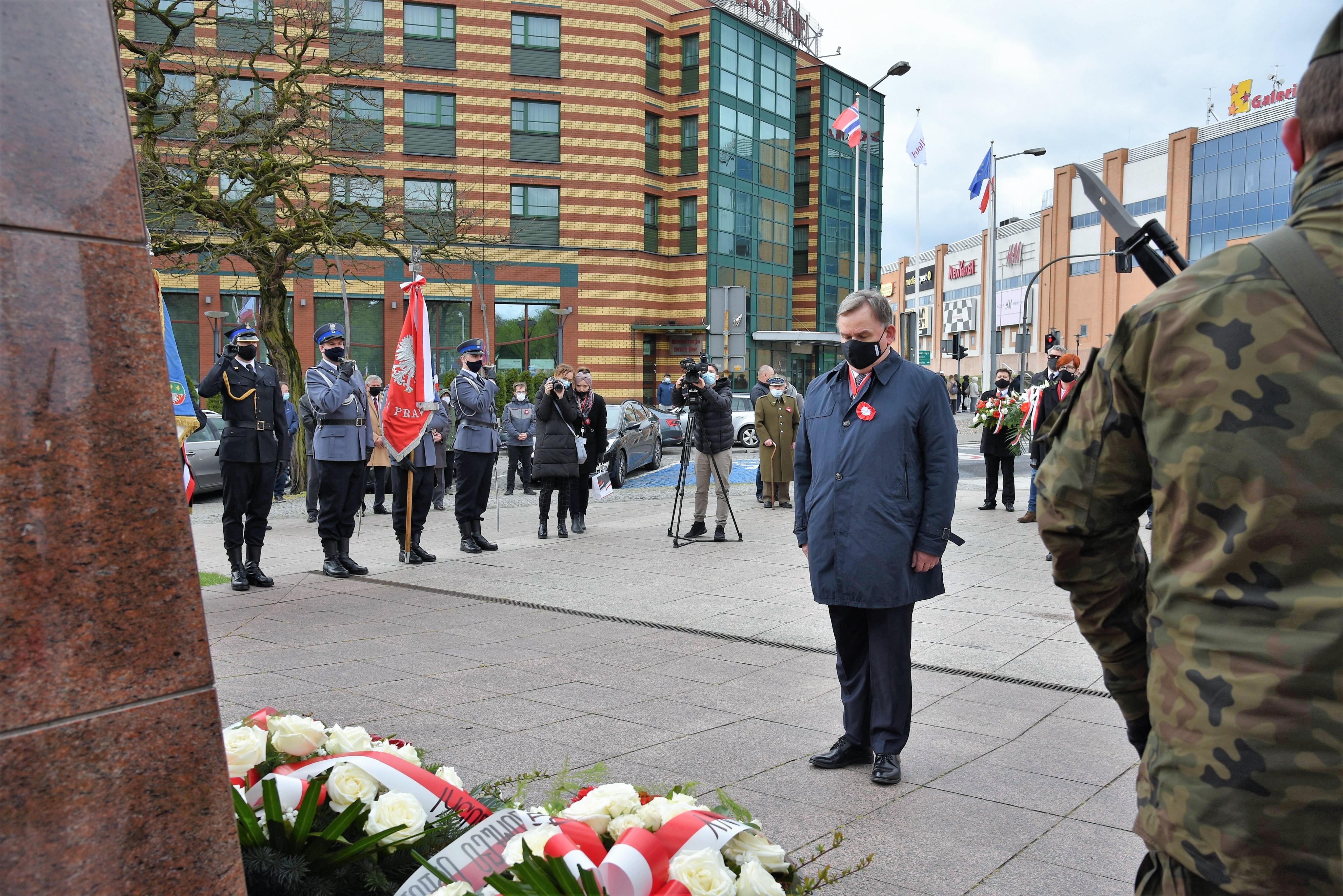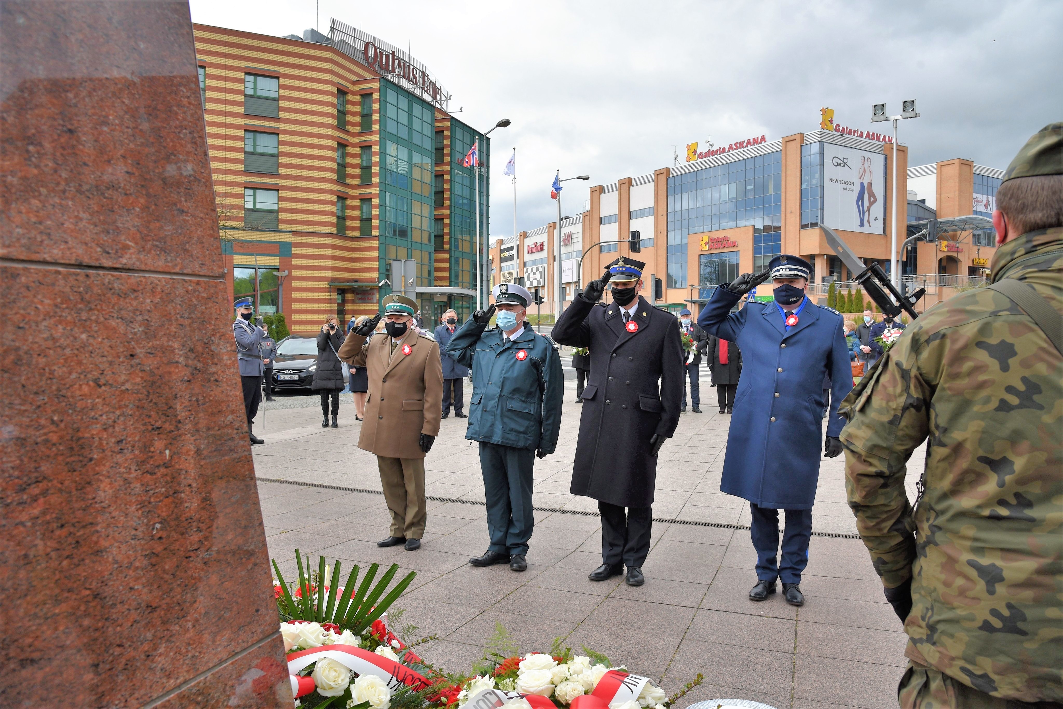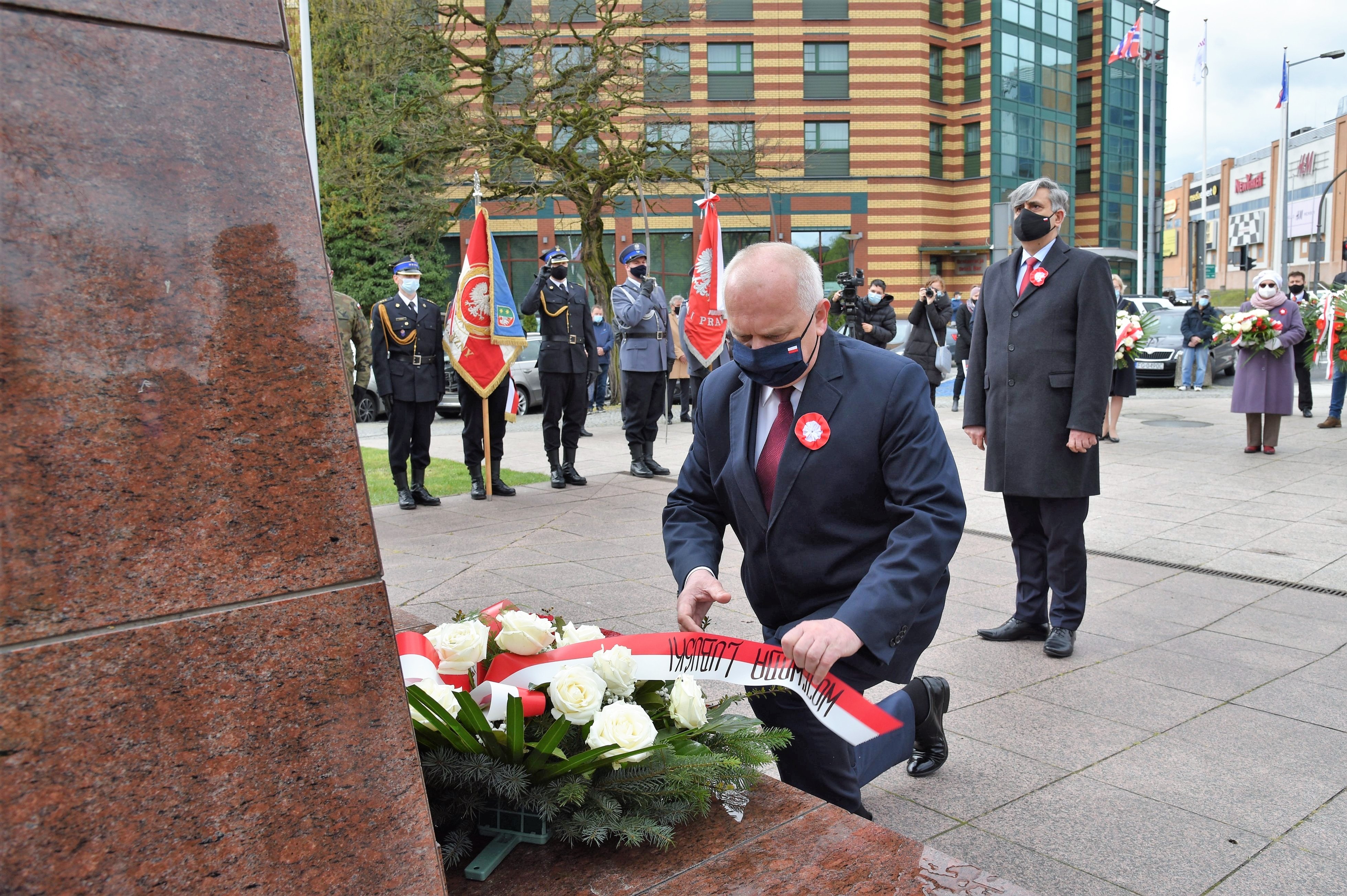 Wicewojewoda Lubuski Wojciech Perczak wraz z doradcami Wojewody Lubuskiego : Markiem Budniakiem, Kazimierzem Łatwińskim i Grzegorzem Maćkowiakiem złożyli kwiaty przed Pomnikiem Konstytucji 3 Maja w Zielonej Górze.