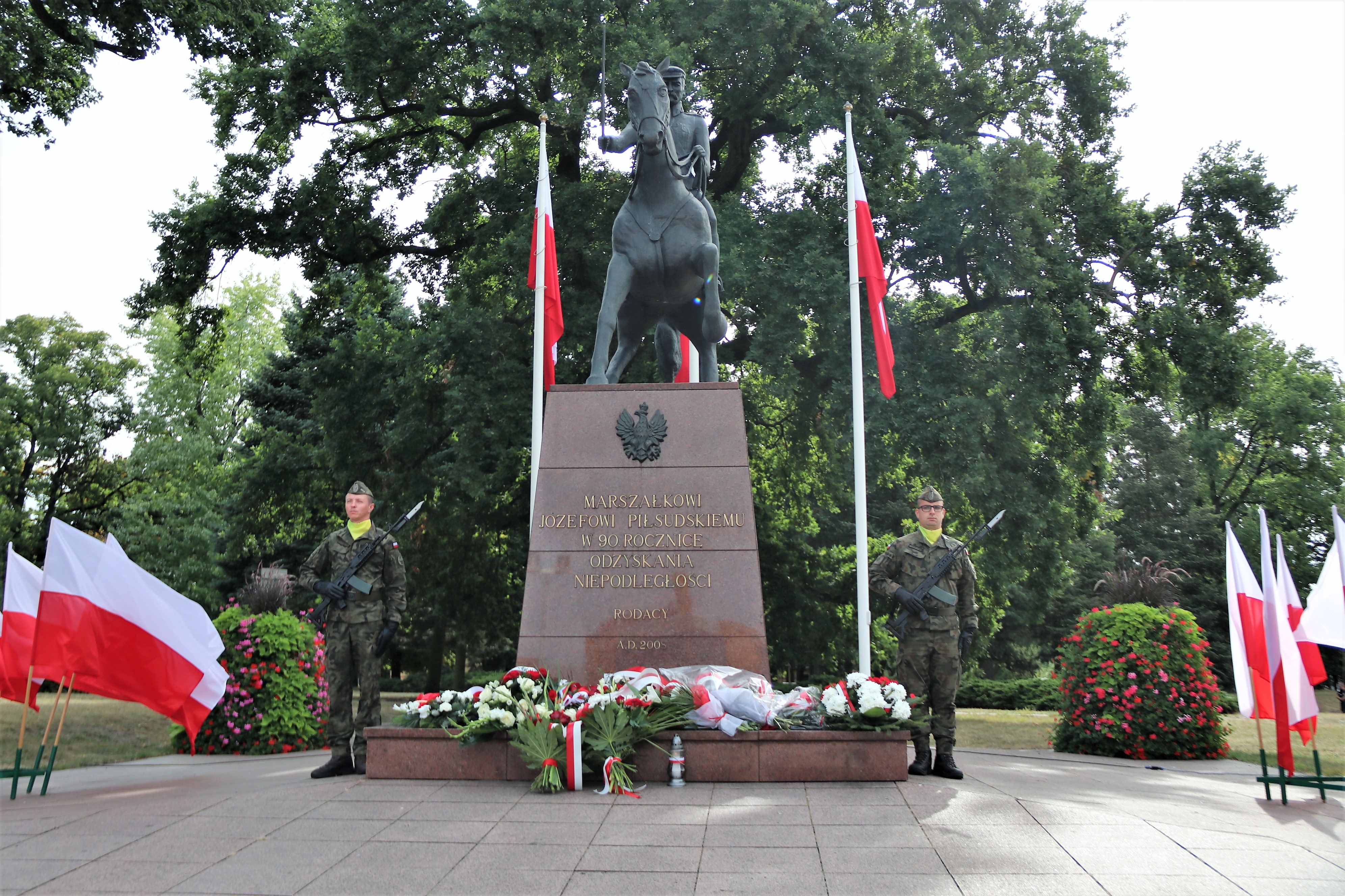 Następnie wojewoda Władysław Dajczak wraz z delegacjami upamiętnił marszałka Józefa Piłsudskiego składając kwiaty i znicze pod jego pomnikiem.