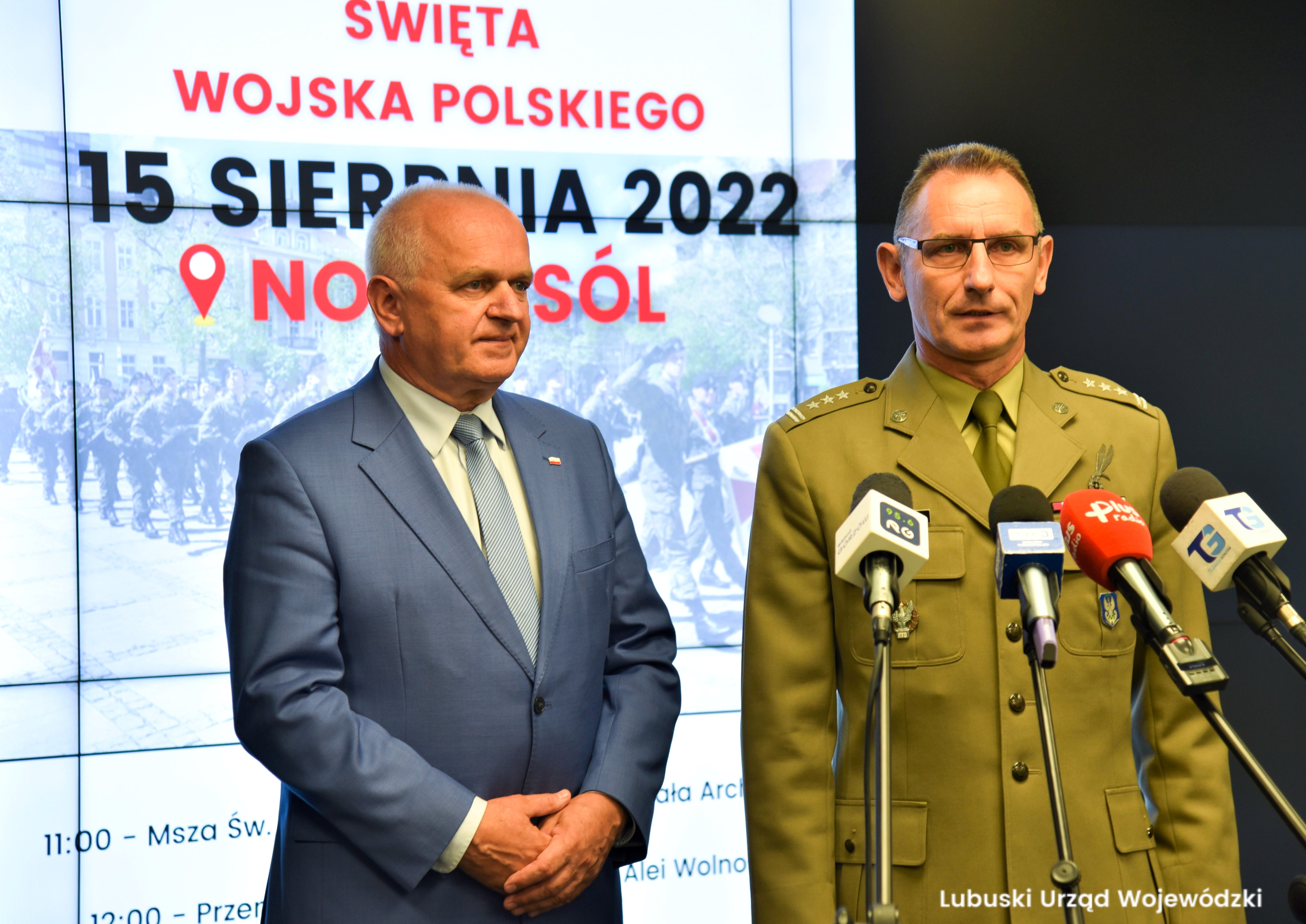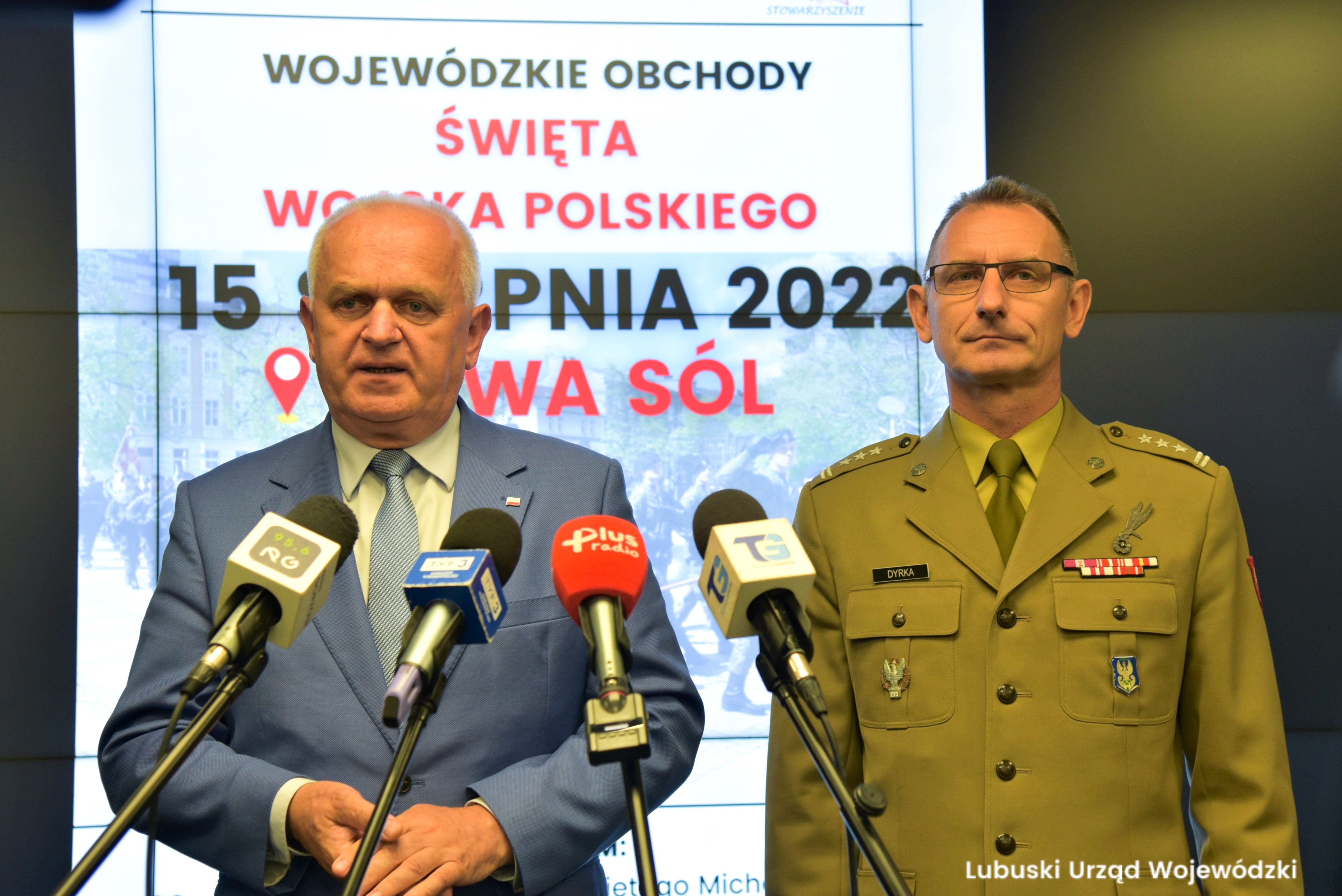 W czasie konferencji prasowej wojewoda Władysław Dajczak zachęcał mieszkańców województwa do uczestniczenia w wydarzeniach wraz z szefem Ośrodka Zamiejscowego Centralnego Wojskowego Centrum Rekrutacji w Zielonej Górze płk. Grzegorzem Dyrką.