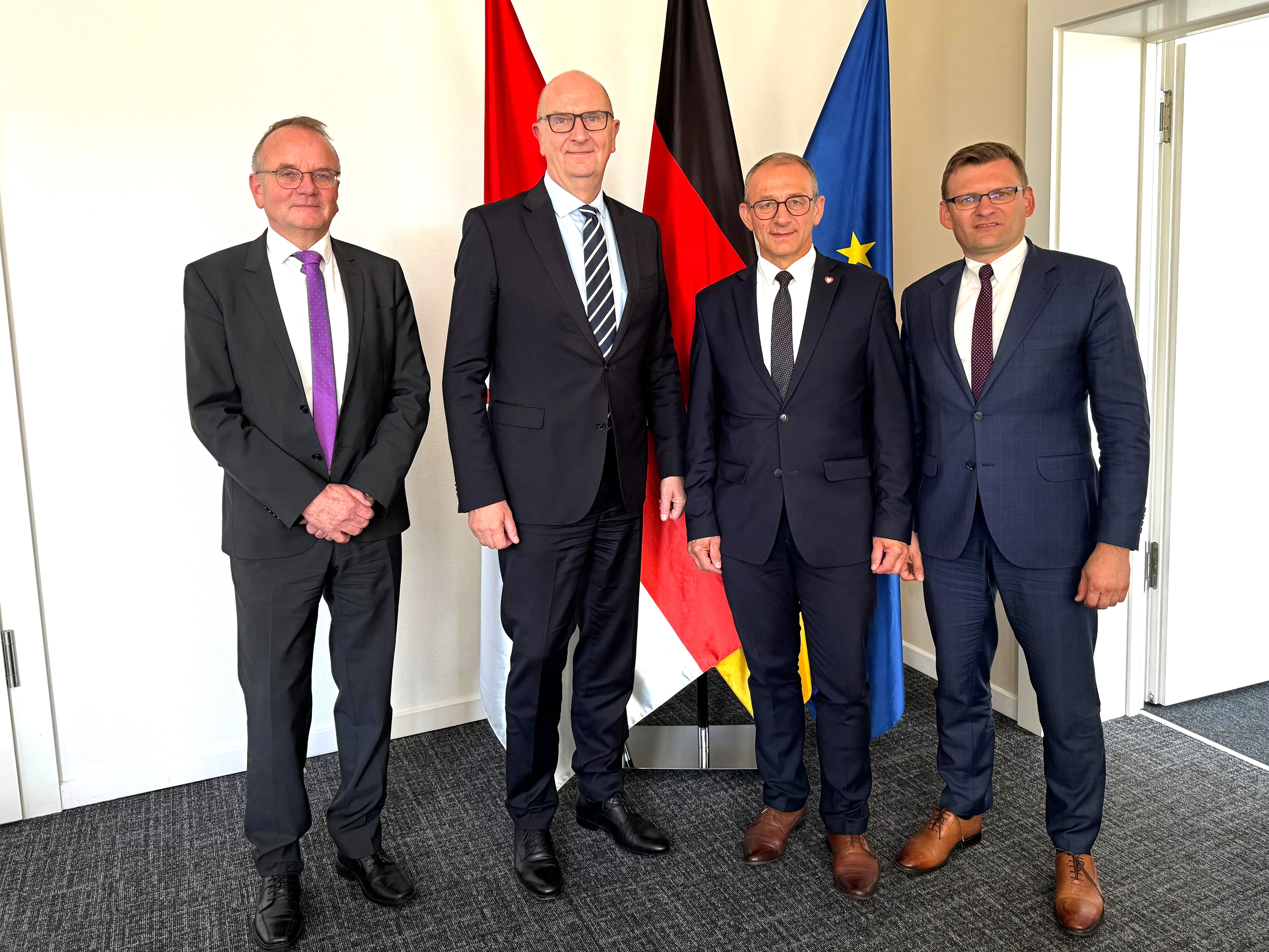 W siedzibie Kancelarii Stanu Kraju Związkowego Brandenburgia odbyło się spotkanie Wojewody Lubuskiego Marka Cebuli z Premierem Brandenburgii Dietmarem Woidke. W rozmowach uczestniczyli również Minister Infrastruktury i Planowania Przestrzennego Brandenburgii Detlef Tabbert oraz doradca wojewody Tomasz Gierczak. Głównym tematem spotkania było pogłębienie współpracy transgranicznej w obszarze infrastruktury transportowej oraz wspólne działania na rzecz poprawy warunków ruchu na granicy polsko-niemieckiej.