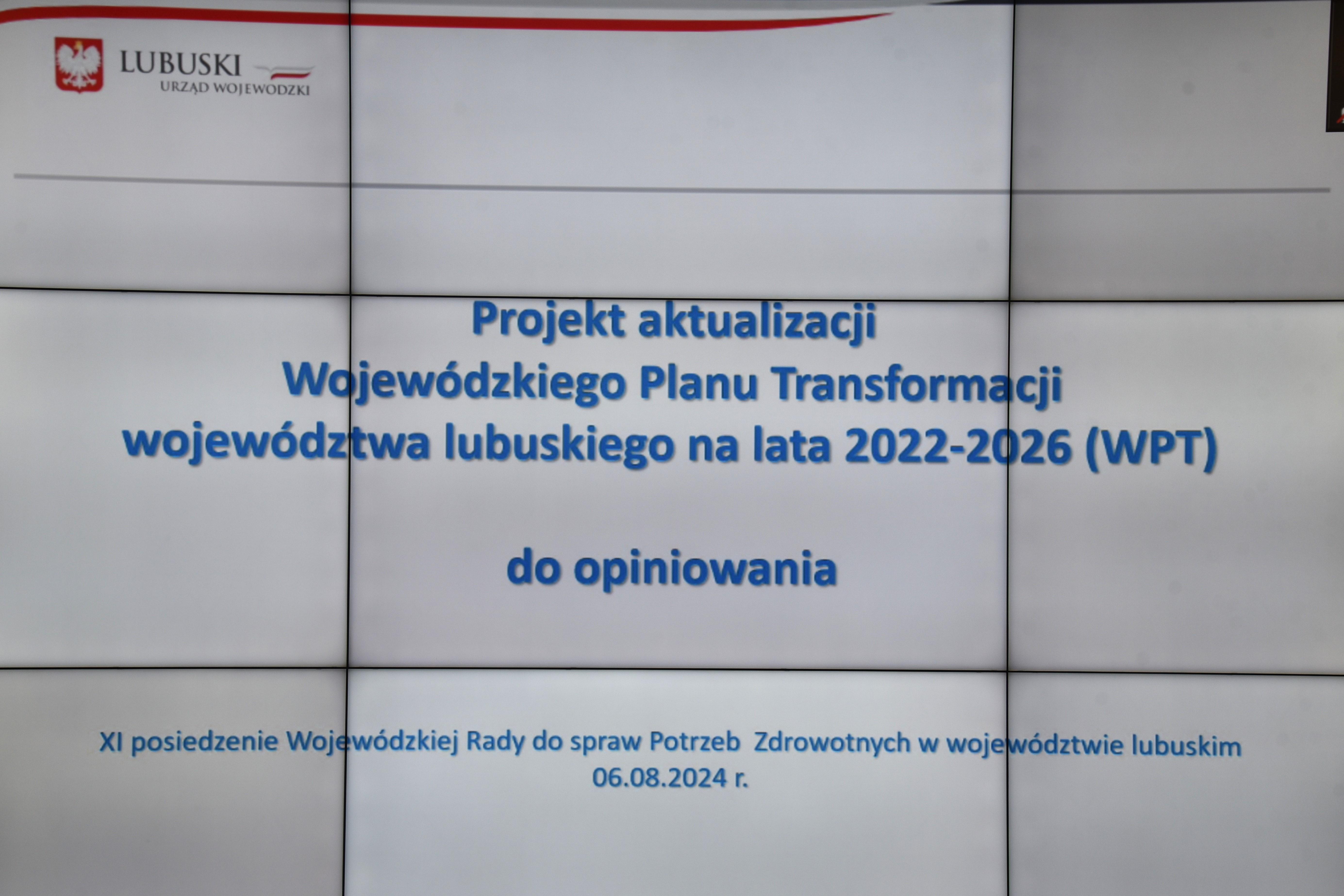 Głównym celem spotkania było omówienie zgłoszonych przez szpitale propozycji działań do aktualizacji Wojewódzkiego Planu Transformacji województwa lubuskiego na lata 2022-2026 (WPT), które zostaną przekazane do zaopiniowania marszałkowi województwa, konwentowi powiatów, wojewódzkim konsultantom w ochronie zdrowia, Prezesowi Narodowego Funduszu Zdrowia oraz wojewódzkiej radzie dialogu społecznego.