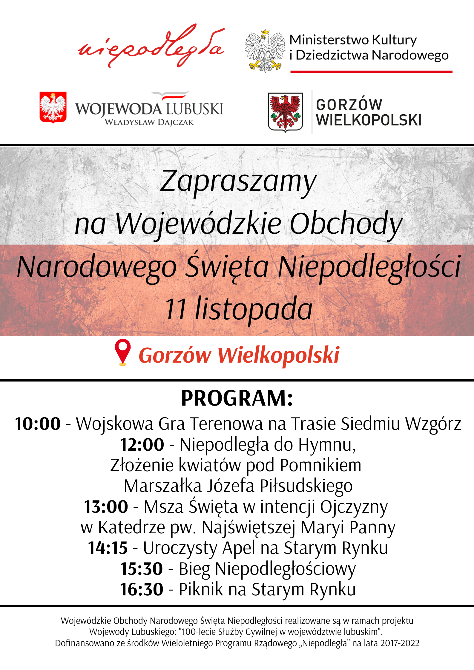 Serdecznie zapraszamy na Wojewódzkie Obchody Narodowego Święta Niepodległości 11 listopada!