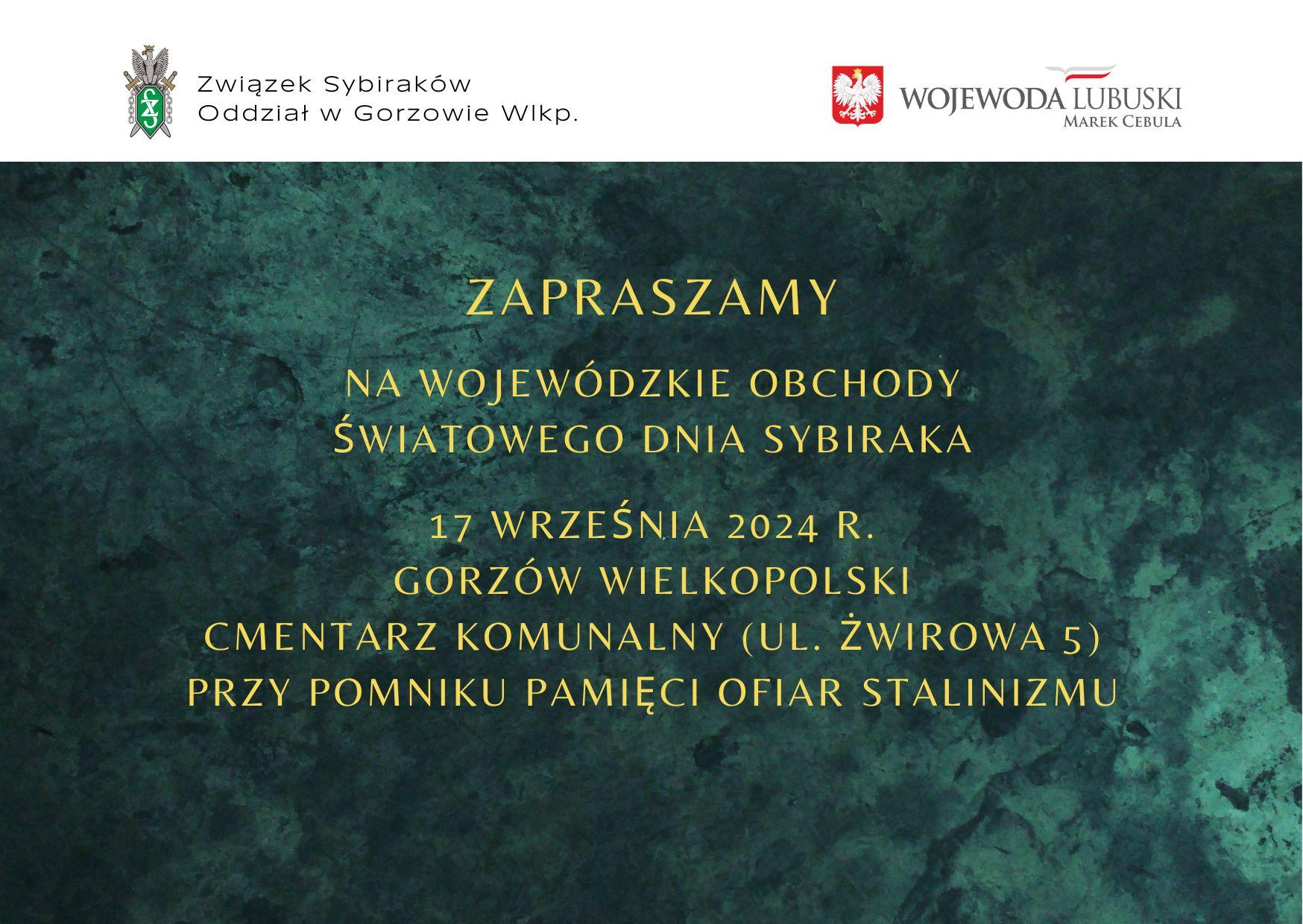 Zapraszamy na Wojewódzkie Obchody Światowego Dnia Sybiraka, które odbędą się 17 września 2024 roku o godz. 10:00 w Gorzowie Wielkopolskim.