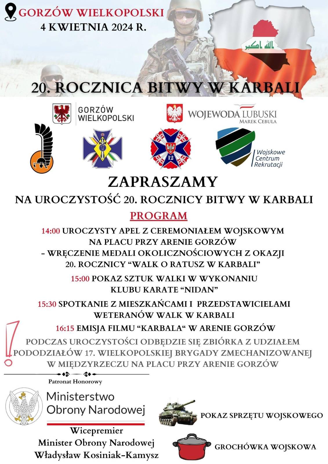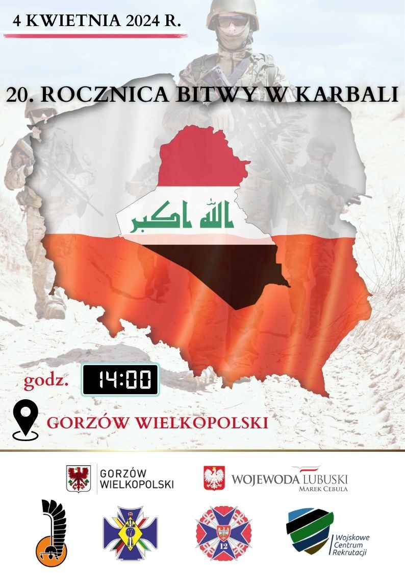 W dniu 4 kwietnia 2024 r. w Gorzowie Wlkp. odbędą sie uroczystości z okazji 20. rocznicy Bitwy w Karbali.