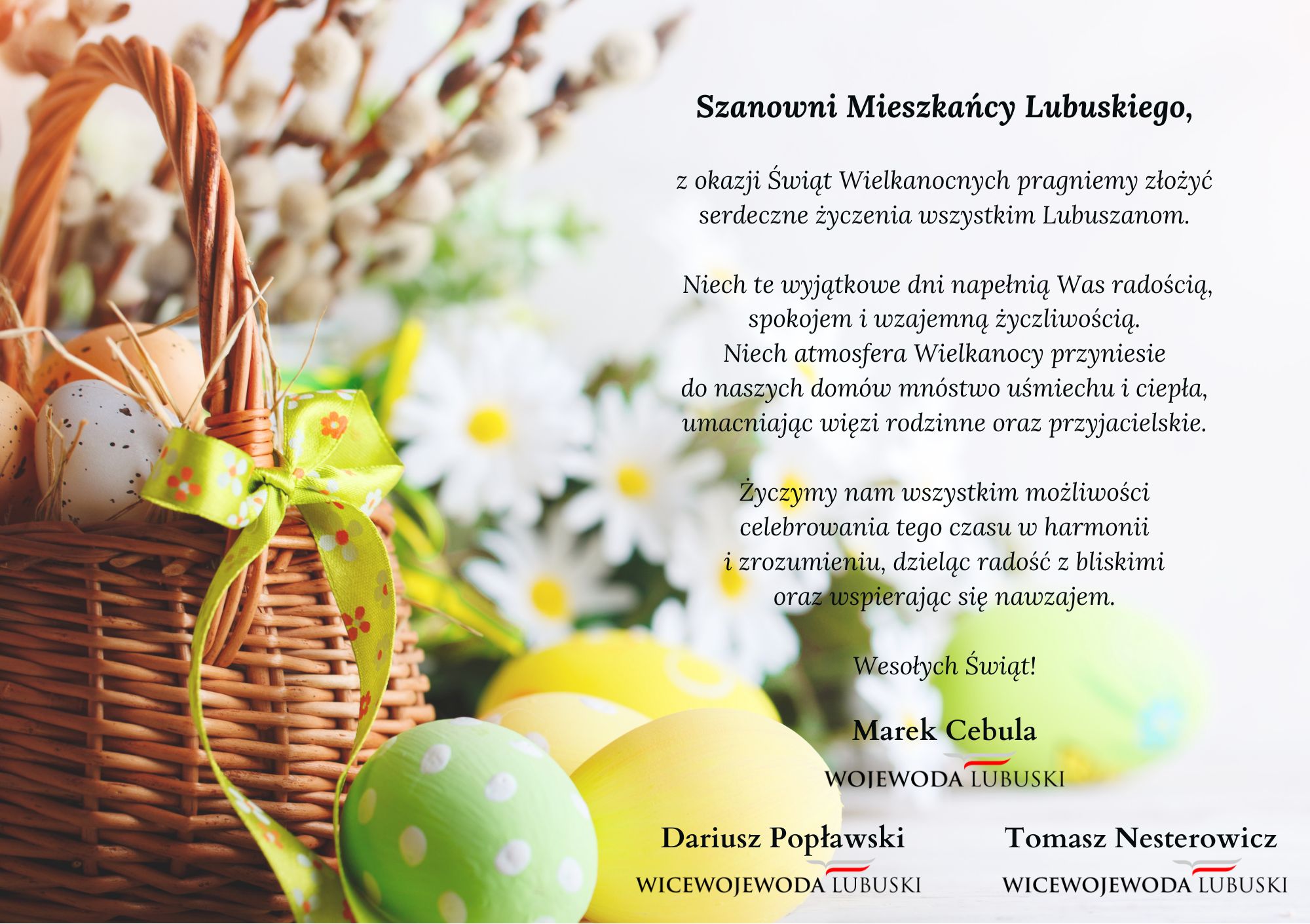z okazji Świąt Wielkanocnych pragniemy złożyć serdeczne życzenia wszystkim Lubuszanom.
