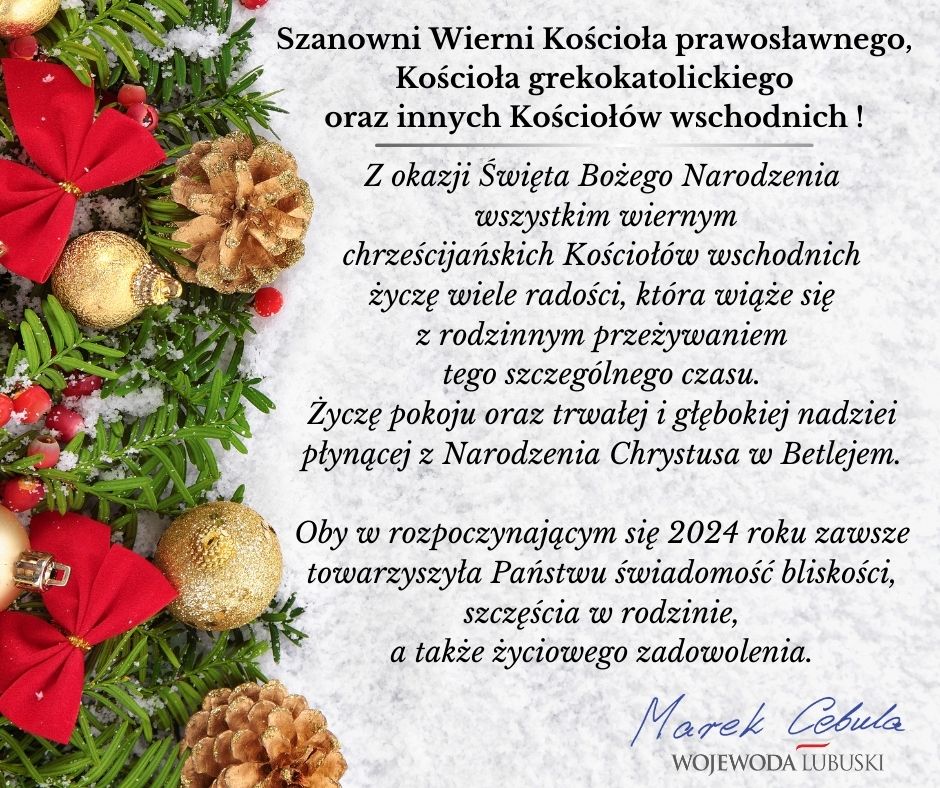 Życzenia Wojewody Lubuskiego dla prawosławnych i grekokatolików