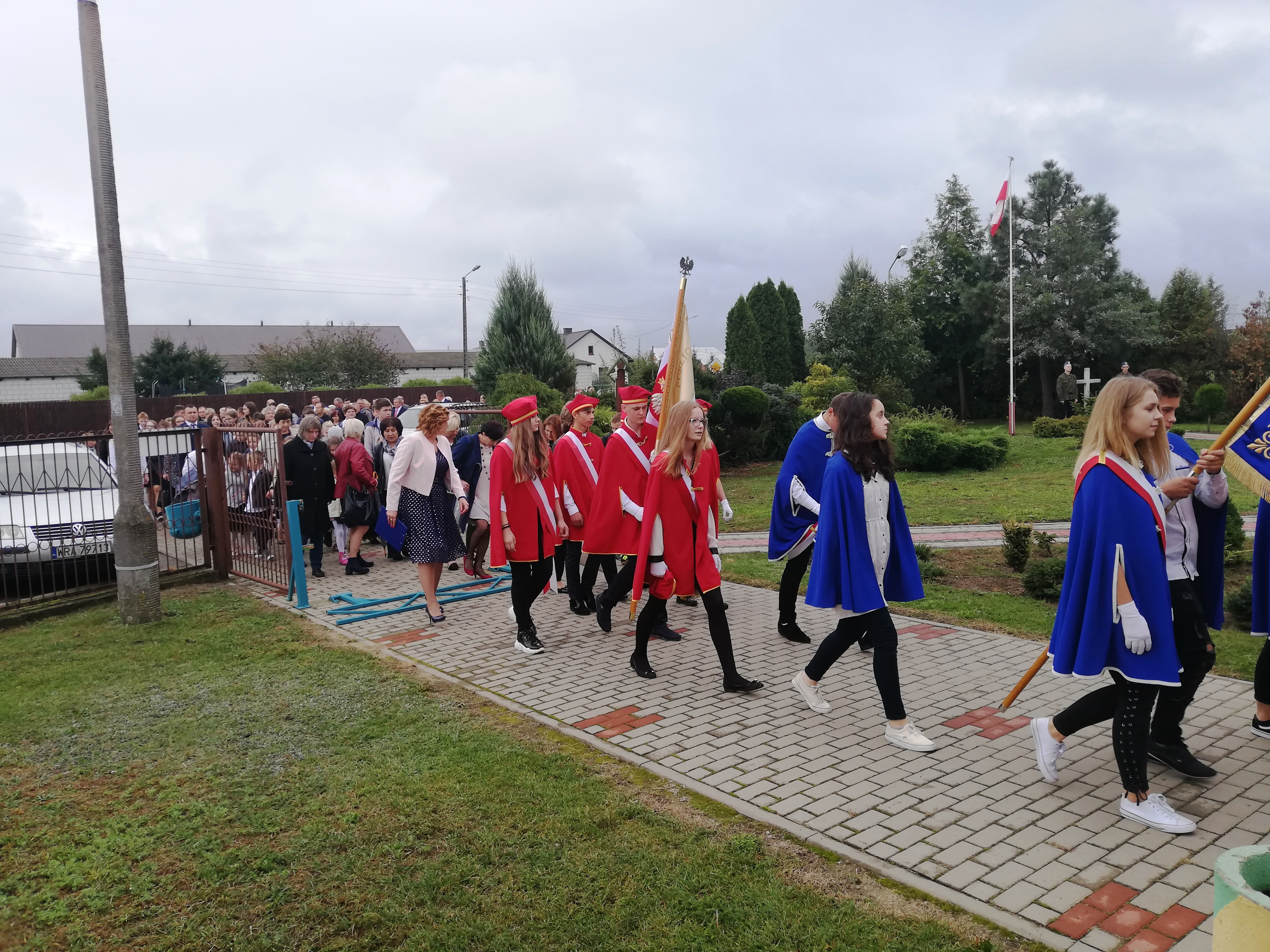 Na placu szkolnym pod pomnikiem „Głazy Pamięci” uczestnicy uroczystości złożyli kwiaty i zapalili znicze.
