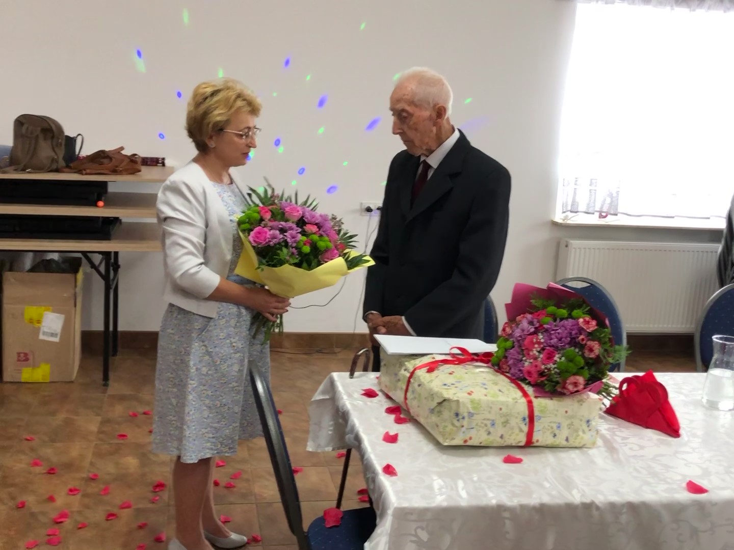 Pan Stefan cieszy się doskonałym zdrowiem i samopoczuciem. Codziennie wykonuje wiele obowiązków osobiście. Przez 48 lat pracował jako księgowy. W tym szczególnym dniu życzenia i gratulacje złożyła Jubilatowi najbliższa rodzina, sąsiedzi i oficjalni goście, a wśród nich Wójt Gminy Regimin Mariola Kołakowska.