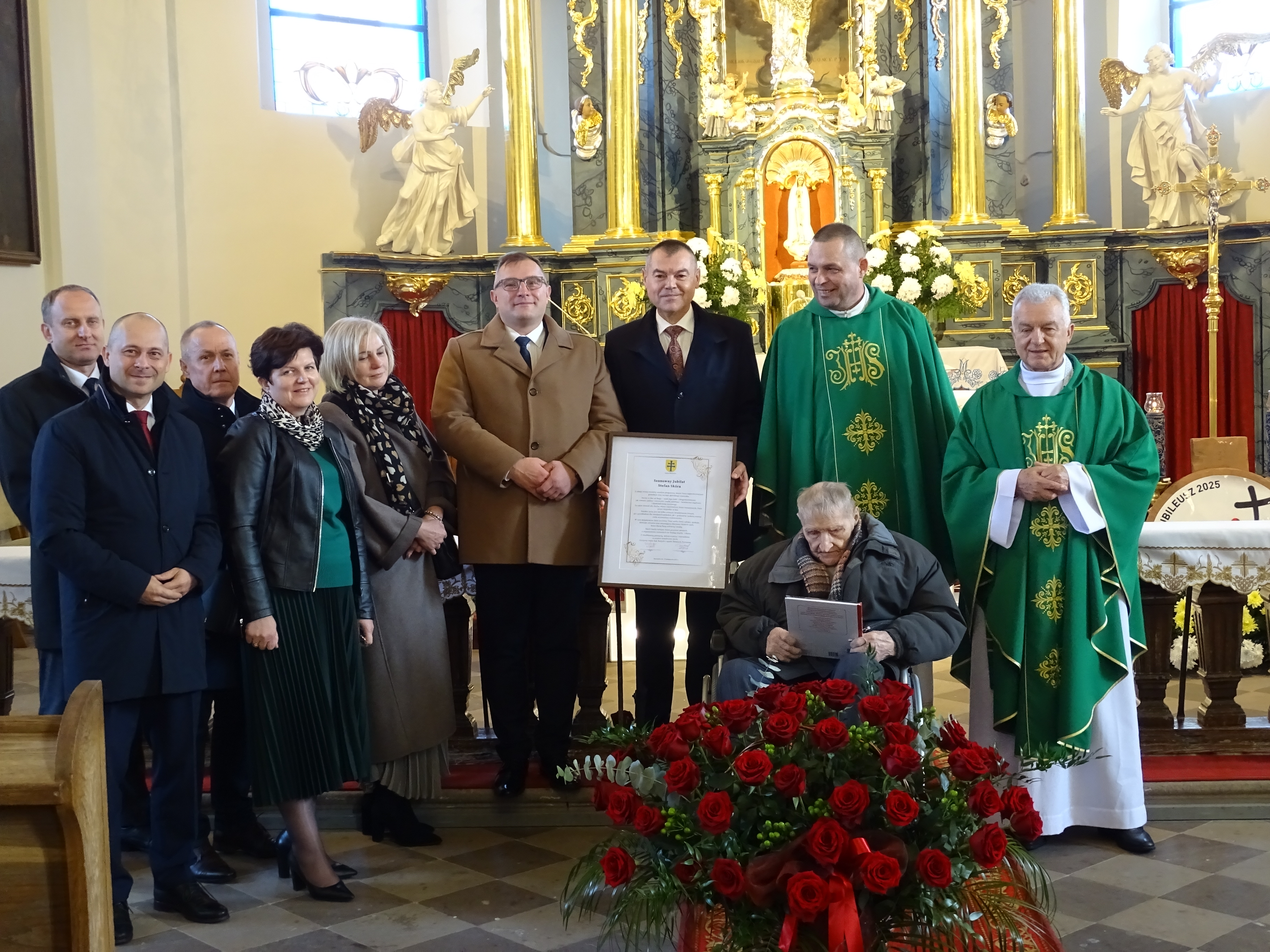 Z udziałem najbliższej rodziny, przyjaciół i sąsiadów oraz przedstawicieli administracji państwowej i samorządowej, w kościele parafialnym w Rzeczniowie odprawiono uroczystą mszę św. w intencji Pana Stefana Skóry, Jubilata świętującego 100. rocznicę urodzin.