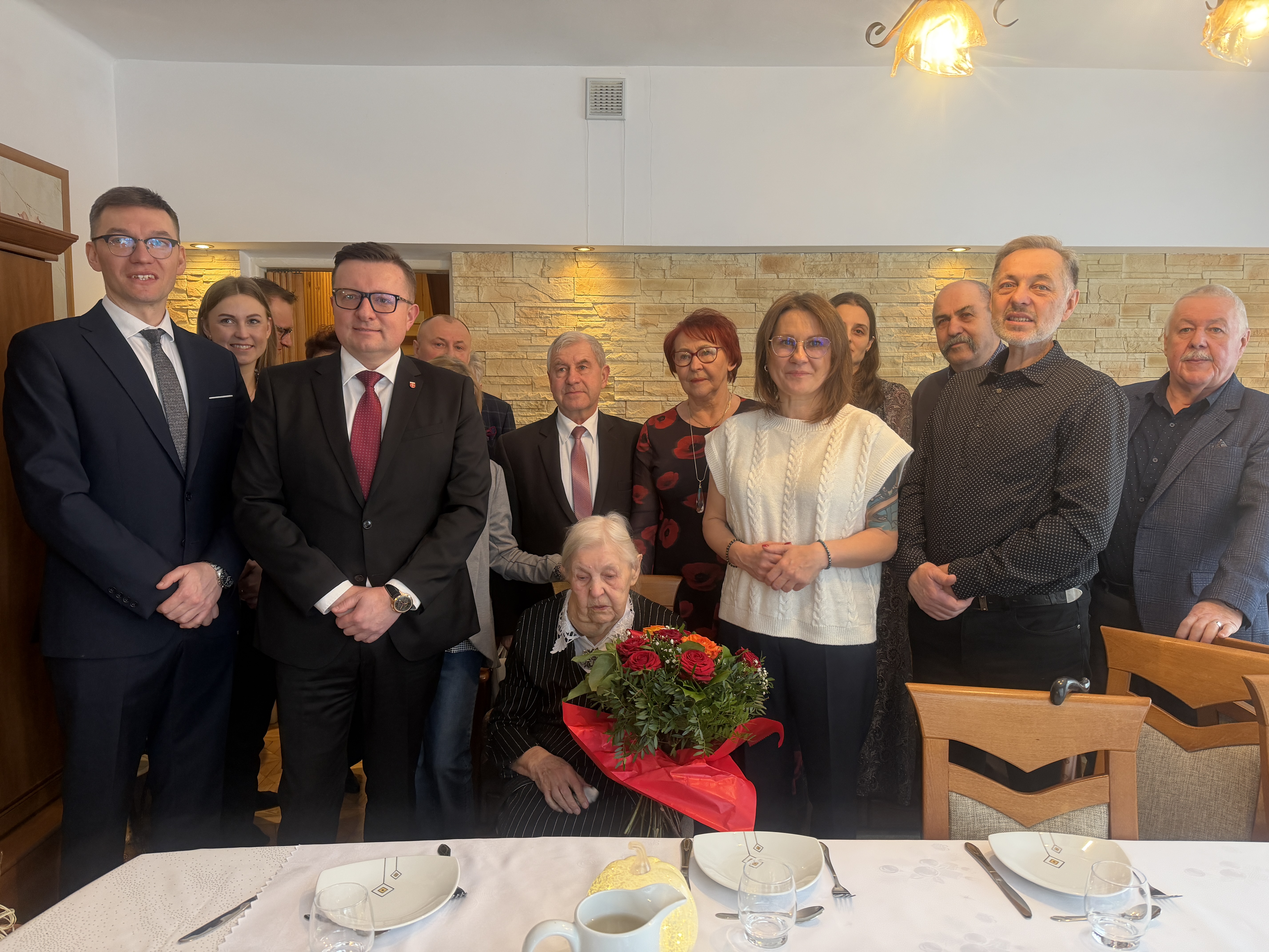 List gratulacyjny od premiera Donalda Tuska oraz kwiaty i życzenia od wojewody mazowieckiego Mariusza Frankowskiego wręczyła Jubilatce Alicja Cichoń, kierownik Delegatury Mazowieckiego Urzędu Wojewódzkiego w Siedlcach.