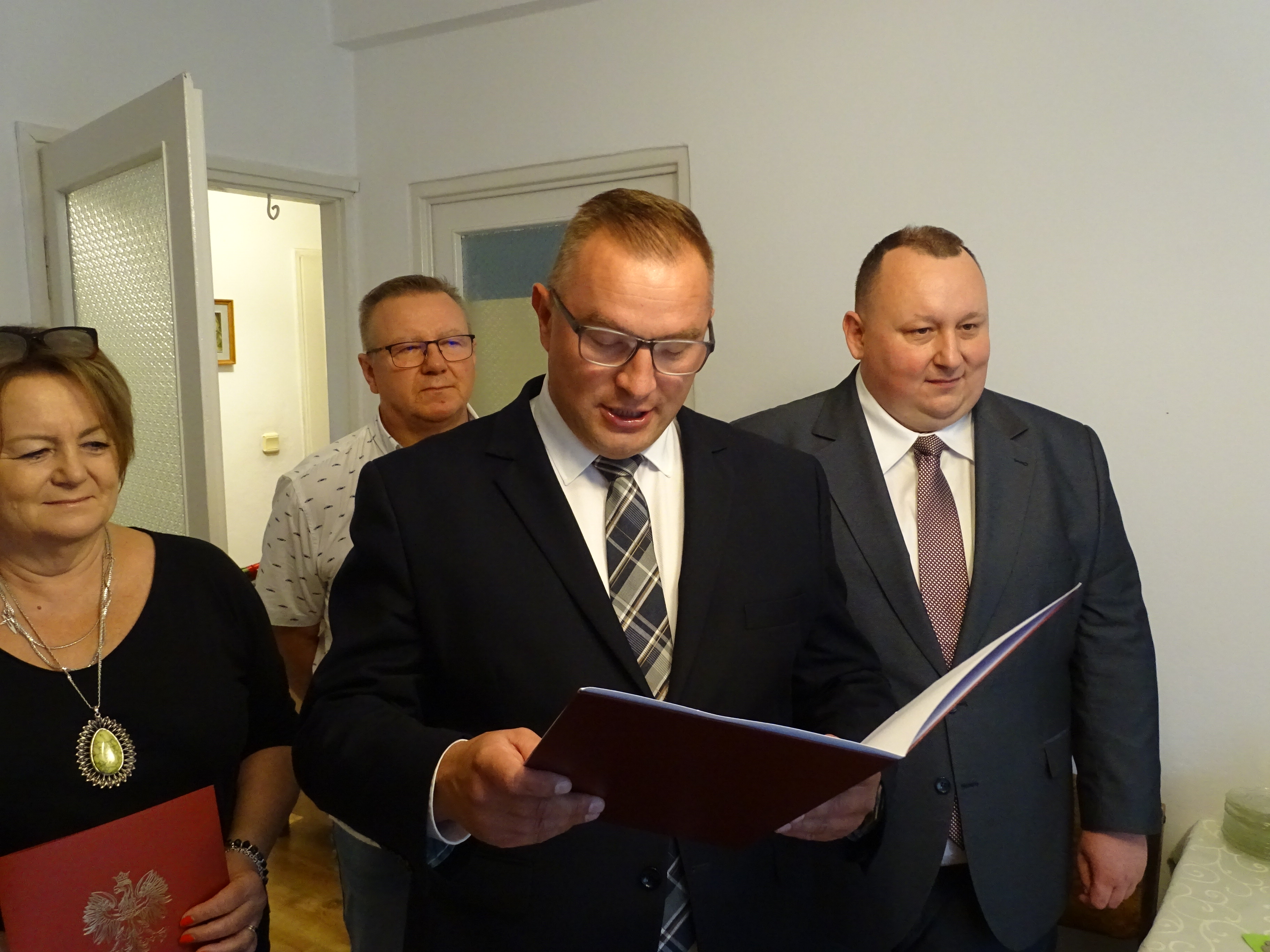 Po odczytaniu listu od Szefa rządu kierownik delegatury Mazowieckiego Urzędu Wojewódzkiego w Radomiu Rafał Molga przekazał Jubilatce najserdeczniejsze życzenia i gratulacje od wojewody mazowieckiego Mariusza Frankowskiego, a następnie wręczył Pani Łucji kwiaty i przekazał upominek.