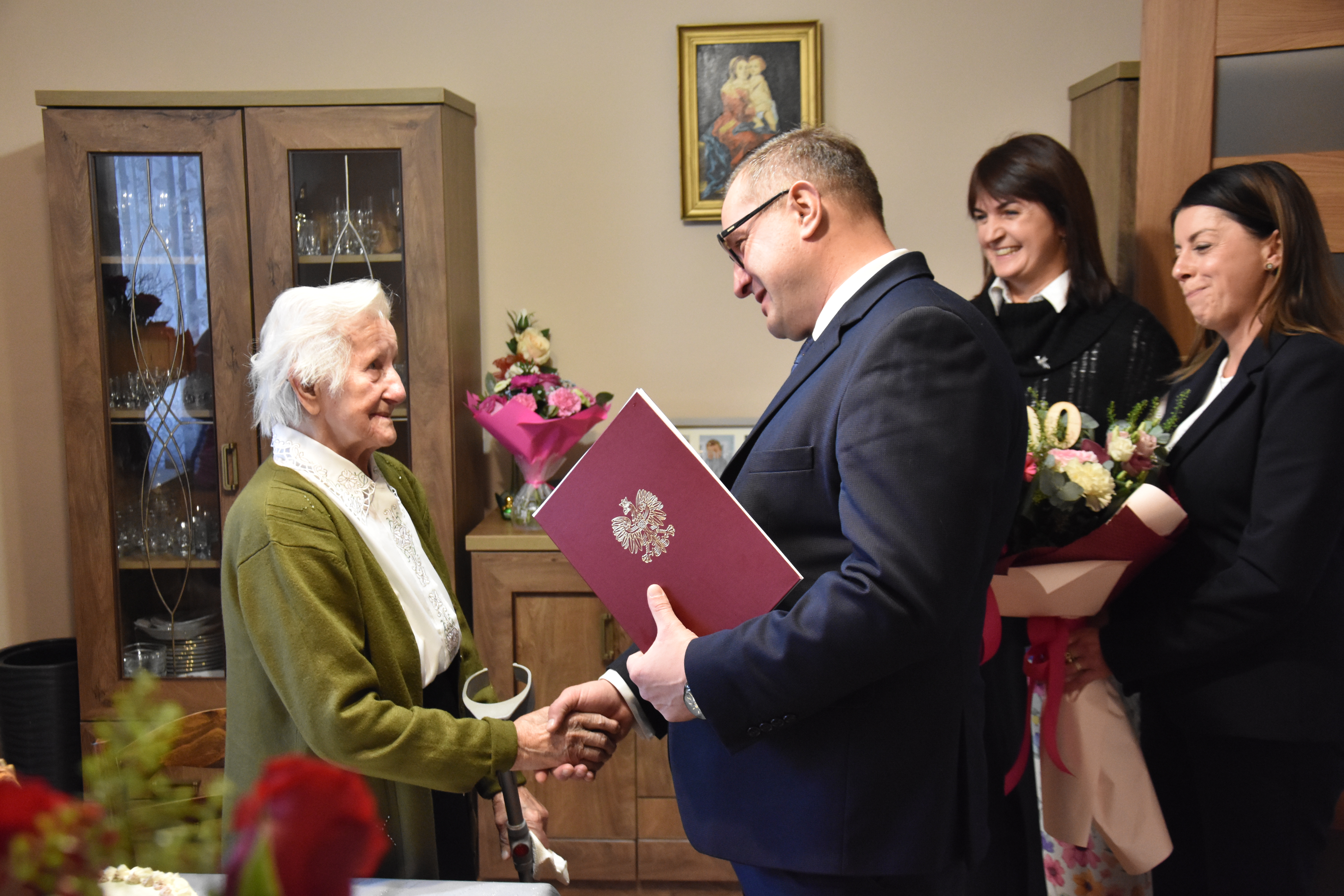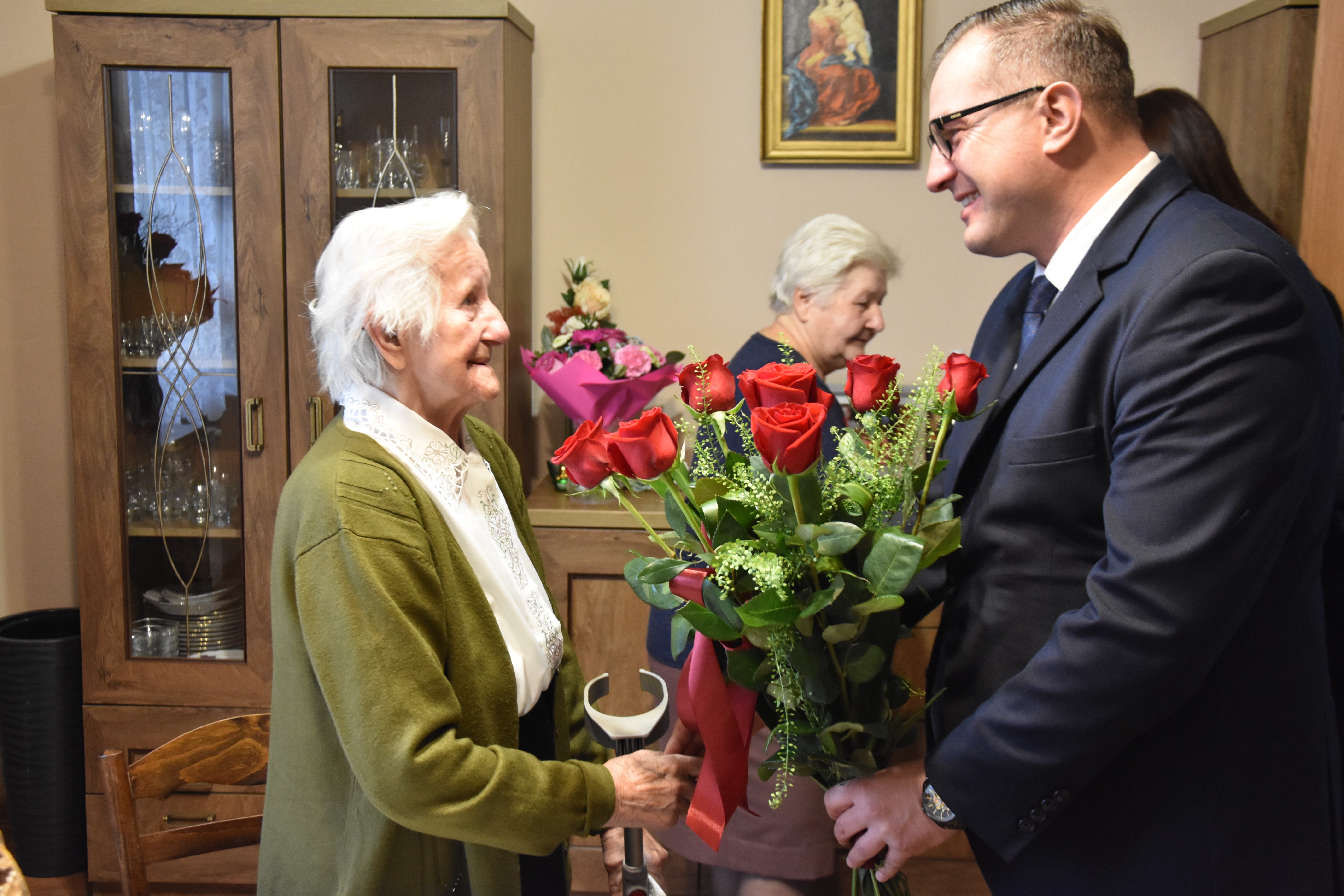 Po odczytaniu listu od Szefa Rządu Kierownik Delegatury MUW w Radomiu Rafał Molga przekazał Pani Mariannie kwiaty oraz najlepsze życzenia urodzinowe i gratulacje od Wojewody Mazowieckiego Mariusza Frankowskiego.