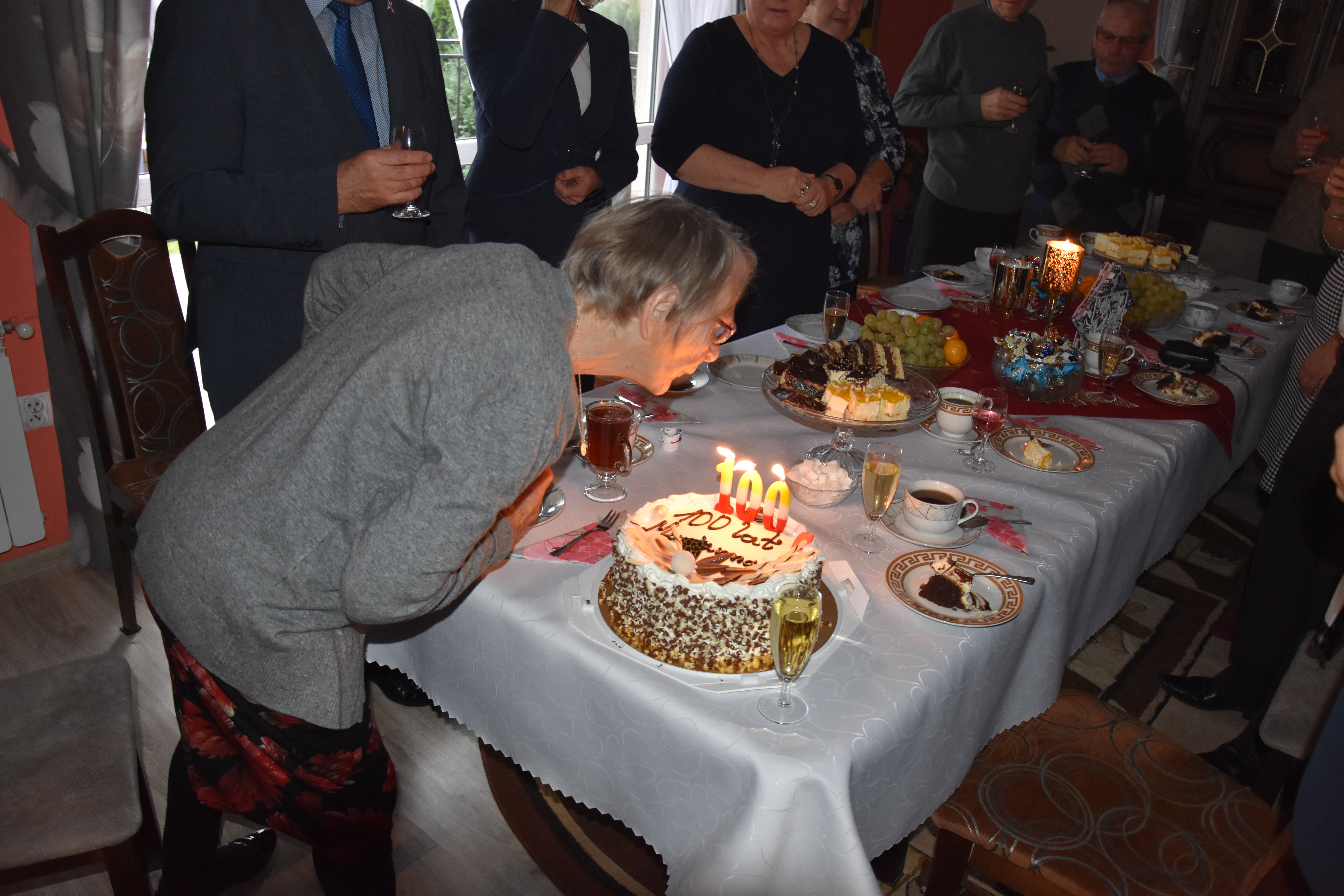 Pani Marianna nie kryła wzruszenia tą niecodzienną dla siebie sytuacją. Z uśmiechem i wdzięcznością przyjęła wszystkie życzenia i gratulacje. Dziękując za pamięć i obecność, życzyła wszystkim gościom równie długiego i szczęśliwego życia.