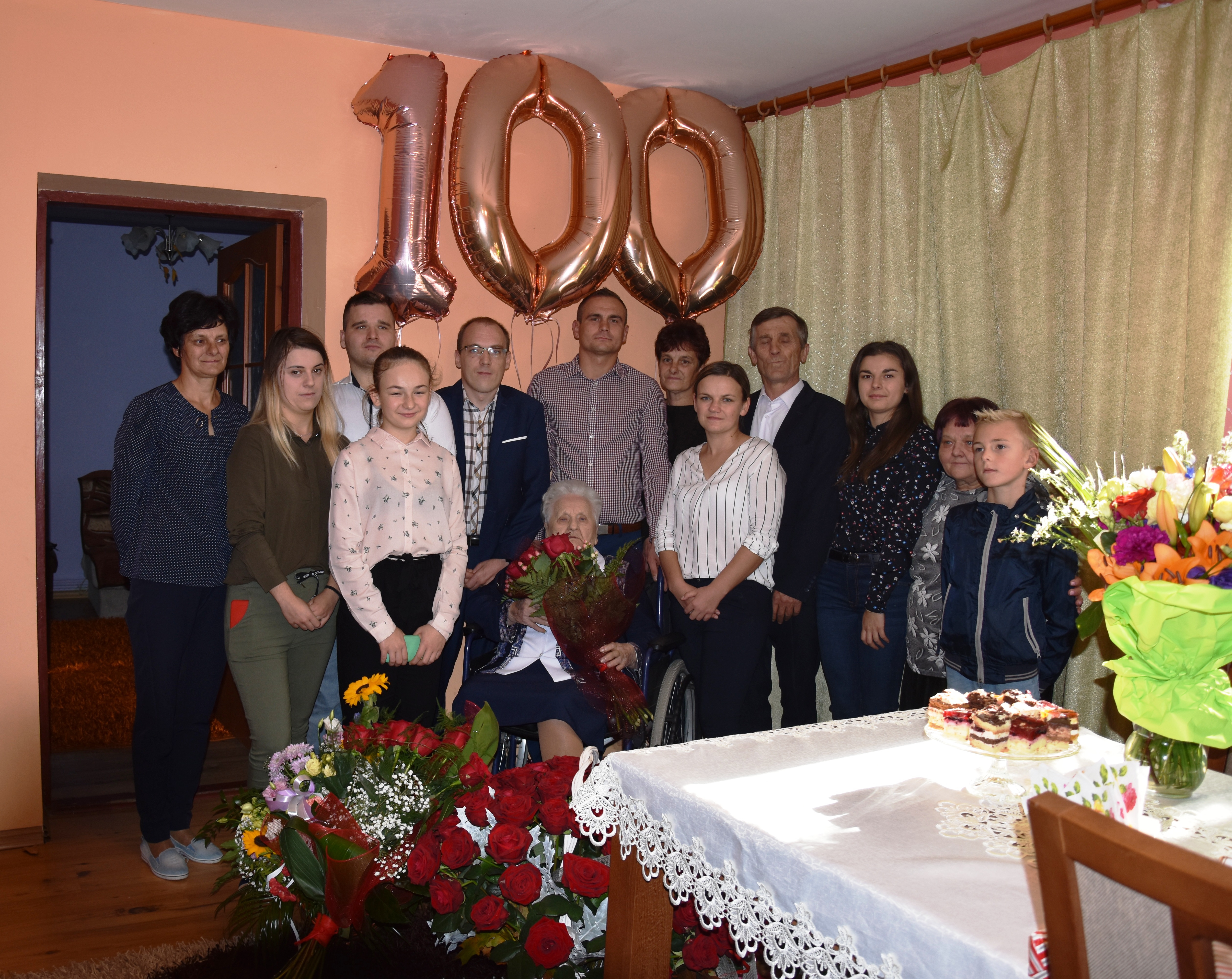 Z okazji ukończenia stu lat życia na urodzinowym przyjęciu u Pani Władysławy zebrała się najbliższa wielopokoleniowa rodzina oraz zaproszeni goście. Życzenia w imieniu władz samorządowych przekazała Sekretarz Gminy Gniewoszów Izabela Kierasińska. Prezesa Kasy Rolniczego Ubezpieczenia Społecznego reprezentowała Mirosława Romanowska, Kierownik Placówki Terenowej KRUS w Kozienicach.