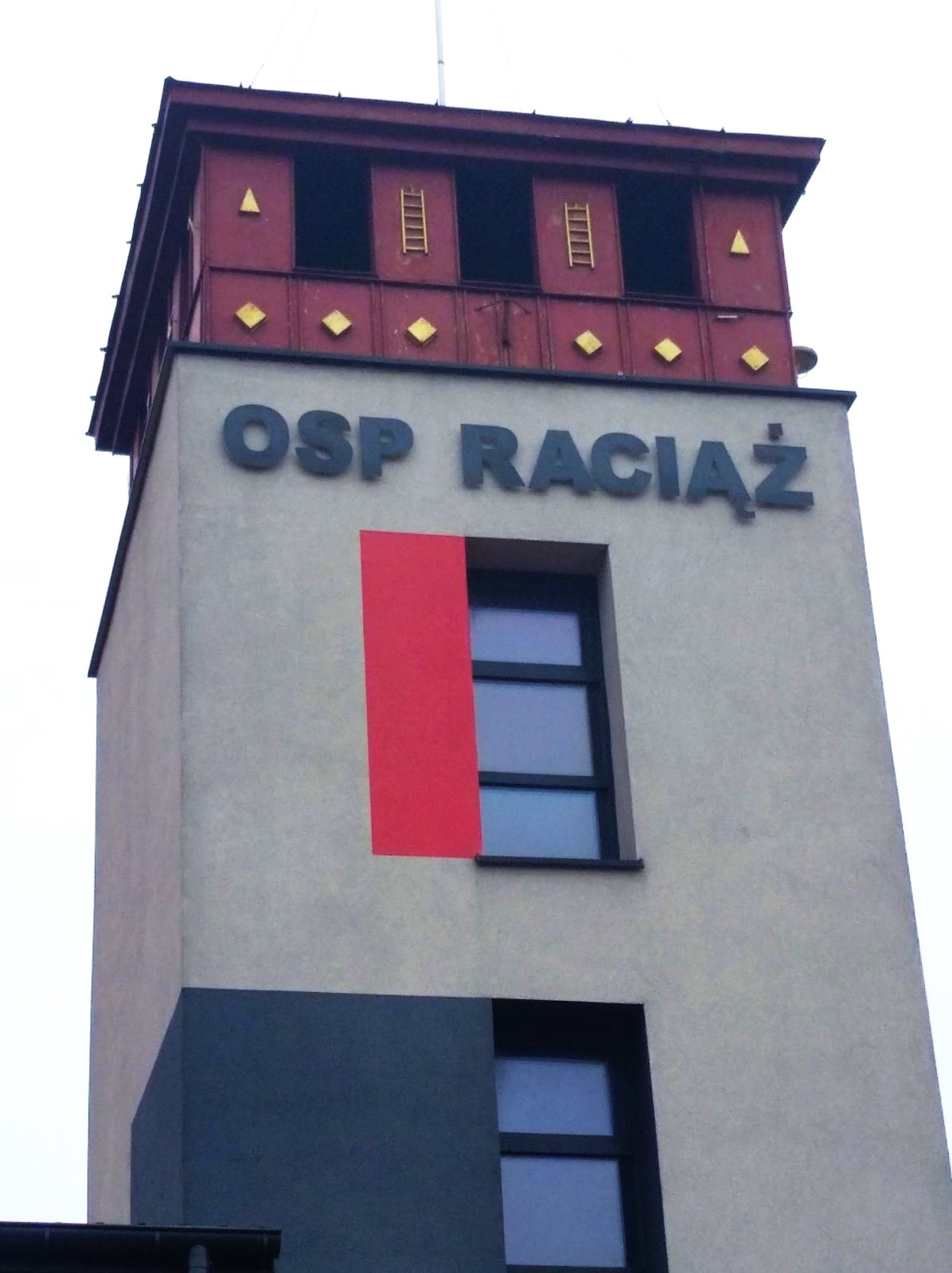 Meldunkiem, przeglądem pododdziałów i podniesieniem flagi państwowej rozpoczęła się uroczystość przez strażnicą OSP w Raciążu. Następnie pododdziały oraz zaproszeni goście udali się na mszę świętą do kościoła pw. Św. Wojciecha.