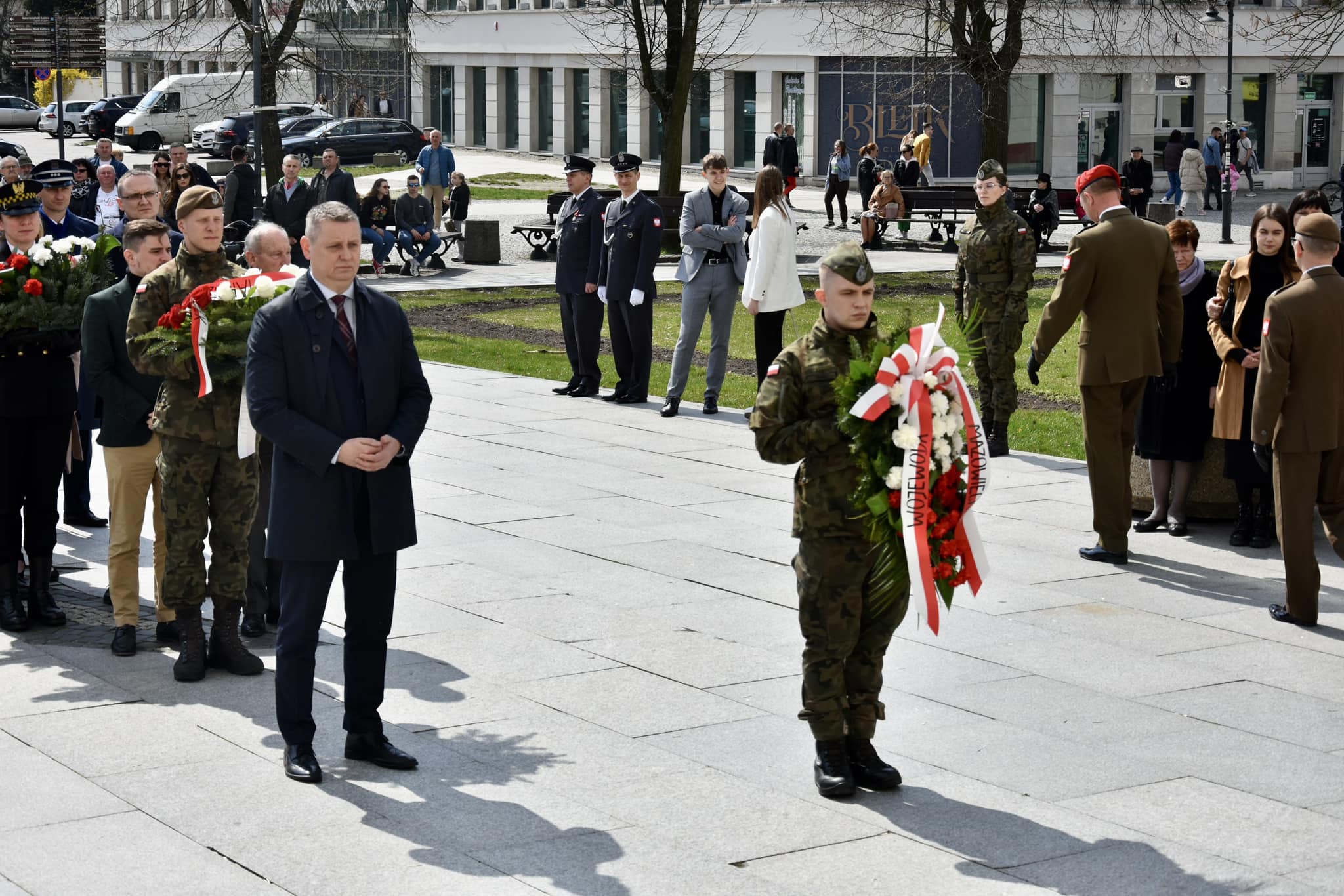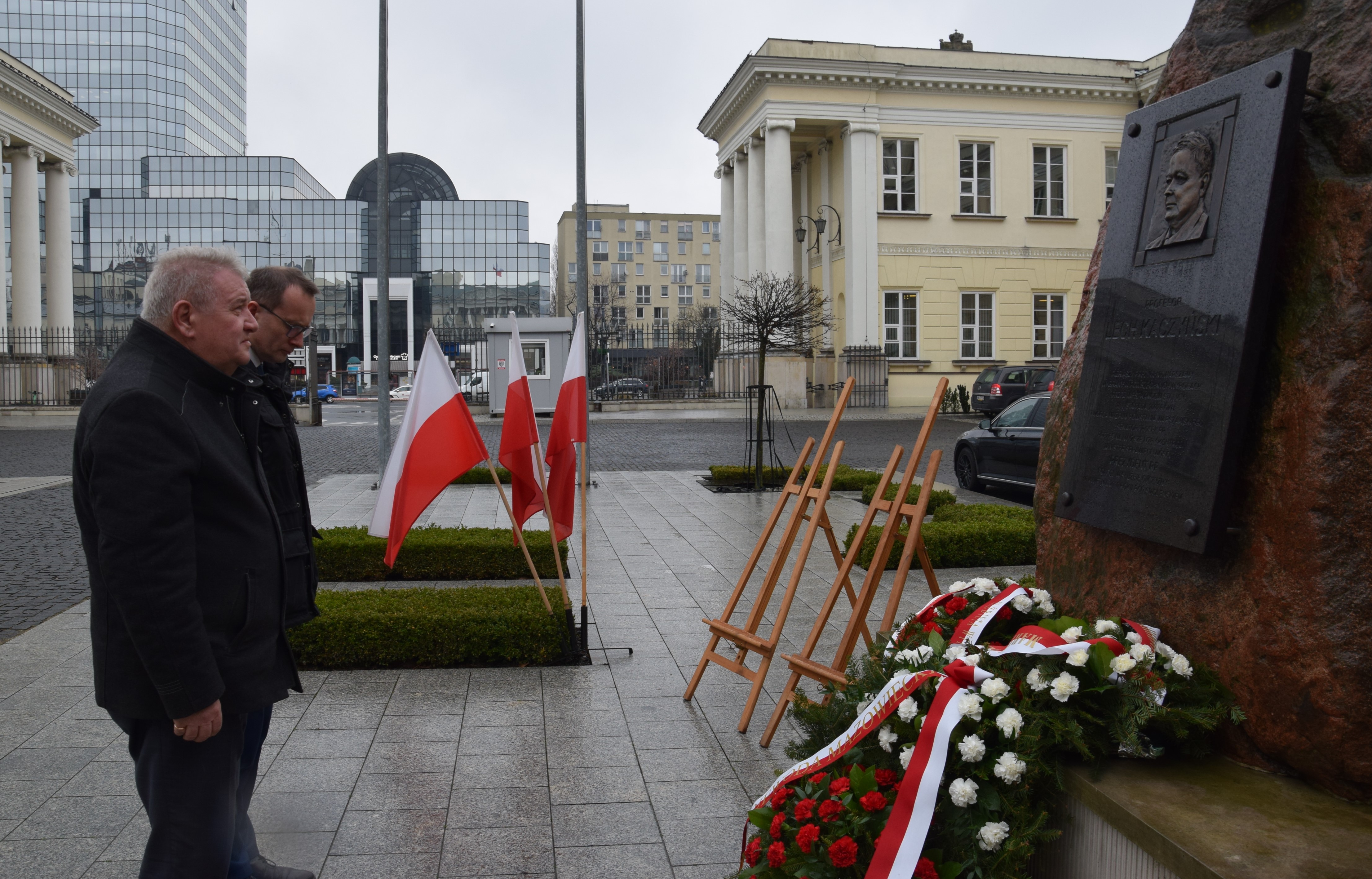 W piątek, 7 kwietnia br. Sylwester Dąbrowski, I Wicewojewoda Mazowiecki i Piotr Oleńczak, Pełnomocnik Wojewody ds. Kombatantów i Osób Represjonowanych złożyli wieniec w miejscu upamiętnienia śp. Prezydenta RP prof. Lecha Kaczyńskiego znajdującym się na dziedzińcu Mazowieckiego Urzędu Wojewódzkiego przy pl. Bankowym 3/5.