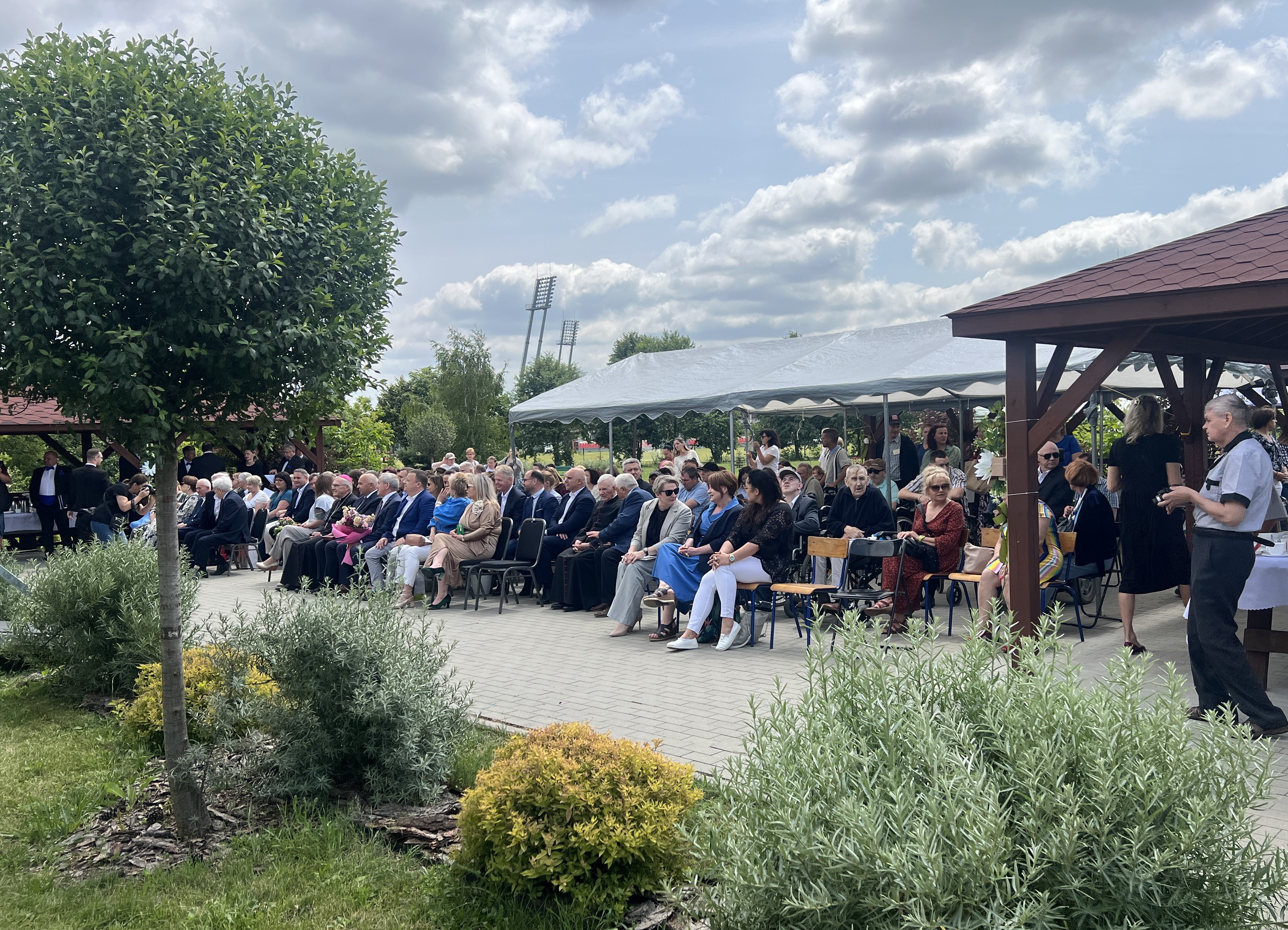 Uroczystość rozpoczęto mszą świętą pod przewodnictwem bp. Kazimierza Gurdy. Następnie mieszkańcy i zaproszeni goście zebrali się w Ogrodzie Marzeń, by wysłuchać okolicznościowych wystąpień. Wiele wzruszeń dostarczył pierwszy dyrektor DPS-u „Dom nad Stawami” Janusz Ginter, wspominając początki placówki, budowę, później nabór pracowników i w konsekwencji rozwój oraz polepszanie warunków dla podopiecznych.