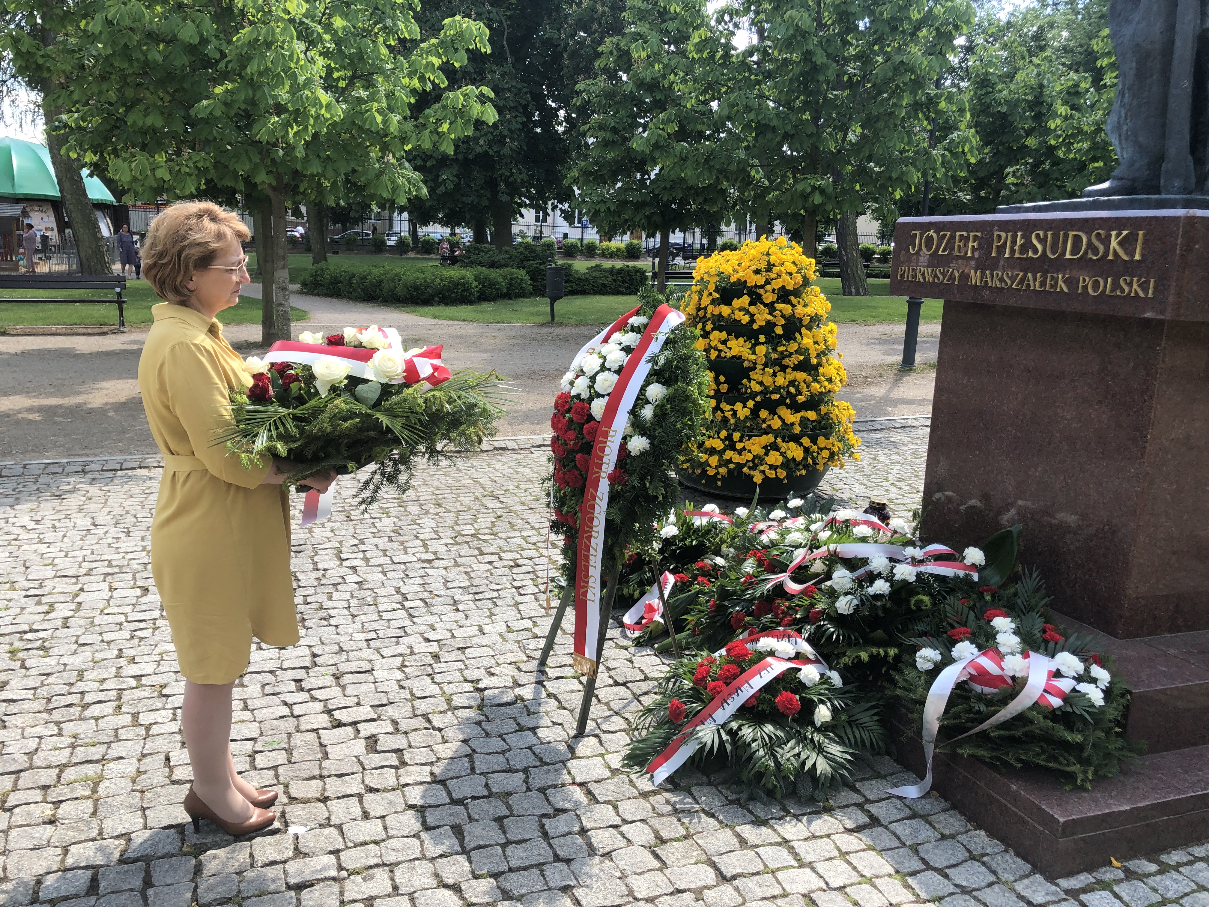 Na początku jubileuszu delegacje złożyły kwiaty przed pomnikiem Marszałka Józefa Piłsudskiego.