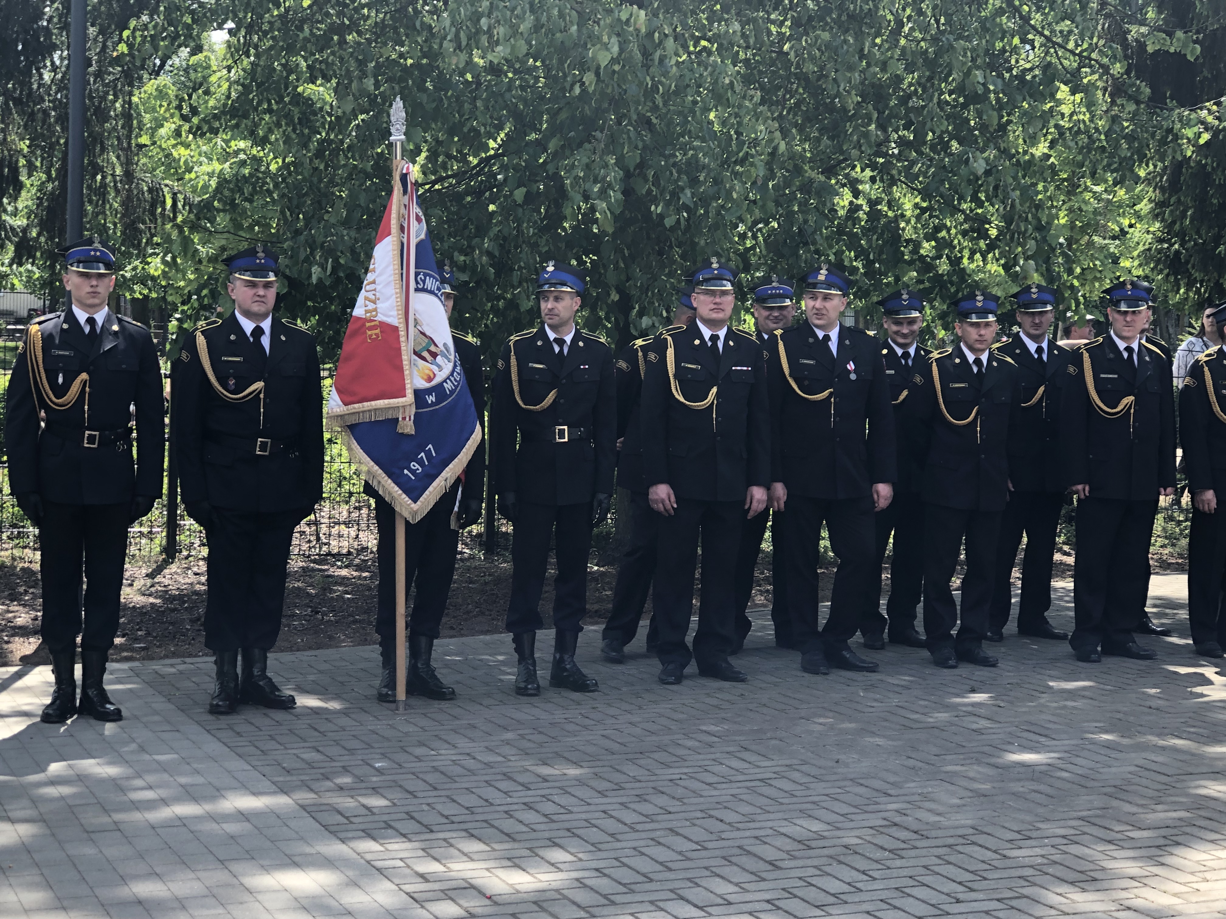 Następnie w Parku Miejskim w Mławie odbył się uroczysty apel, podczas którego wręczono odznaczenia, akt nadania wyższych stopni służbowych oraz wyróżnienia dla zasłużonych strażaków.