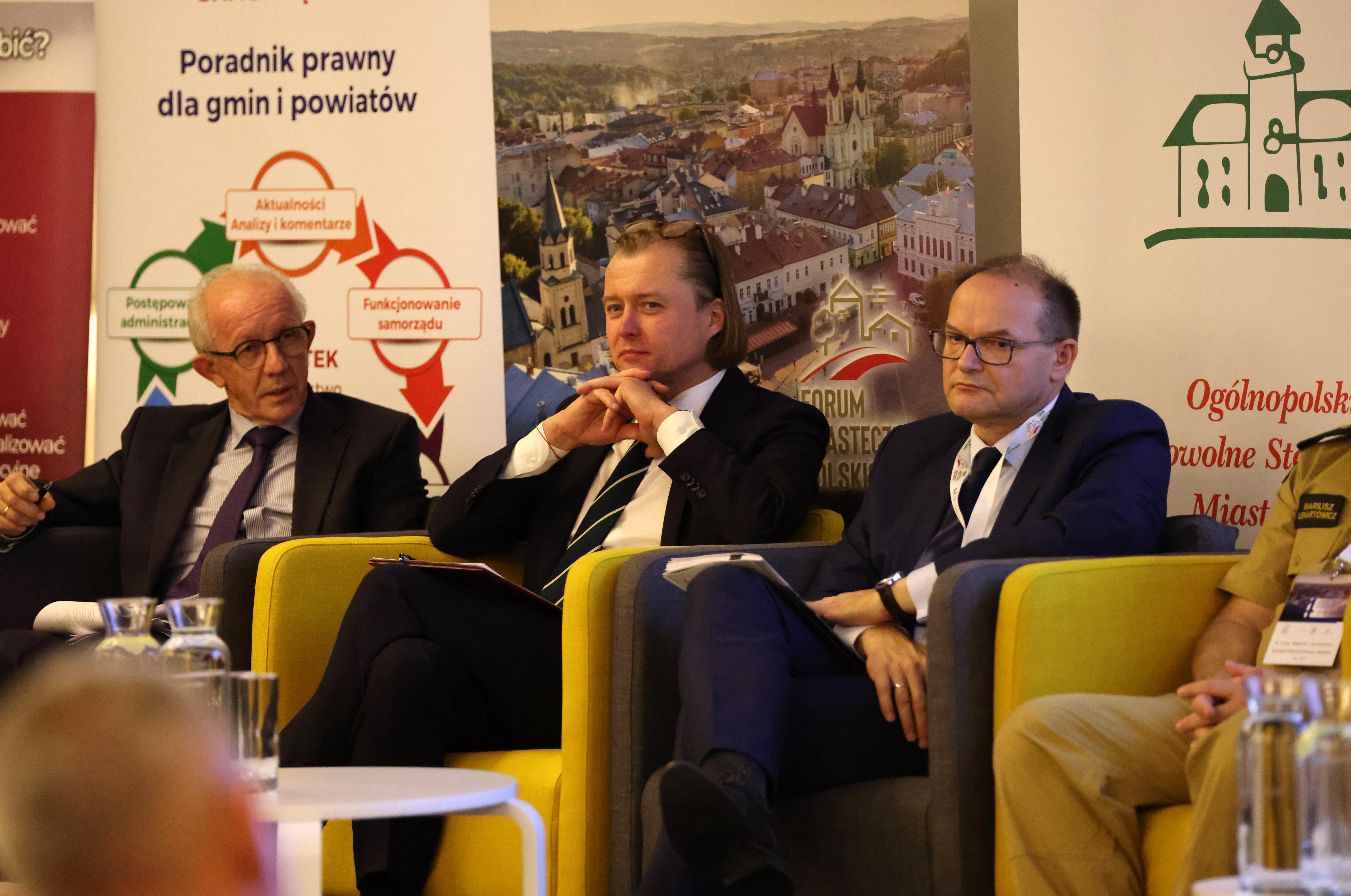 W panelu udział wzięli również st. bryg. Mariusz Lenartowicz Dyrektor Biura Ochrony Ludności w Komendzie Głównej Państwowej Straży Pożarnej, Marek Wójcik Pełnomocnik Zarządu, Ekspert ds. legislacyjnych Związku Miast Polskich oraz m.in. Adam Banaszak radny Powiatu Inowrocławskiego, Członek wspierający Unii Miasteczek Polskich.