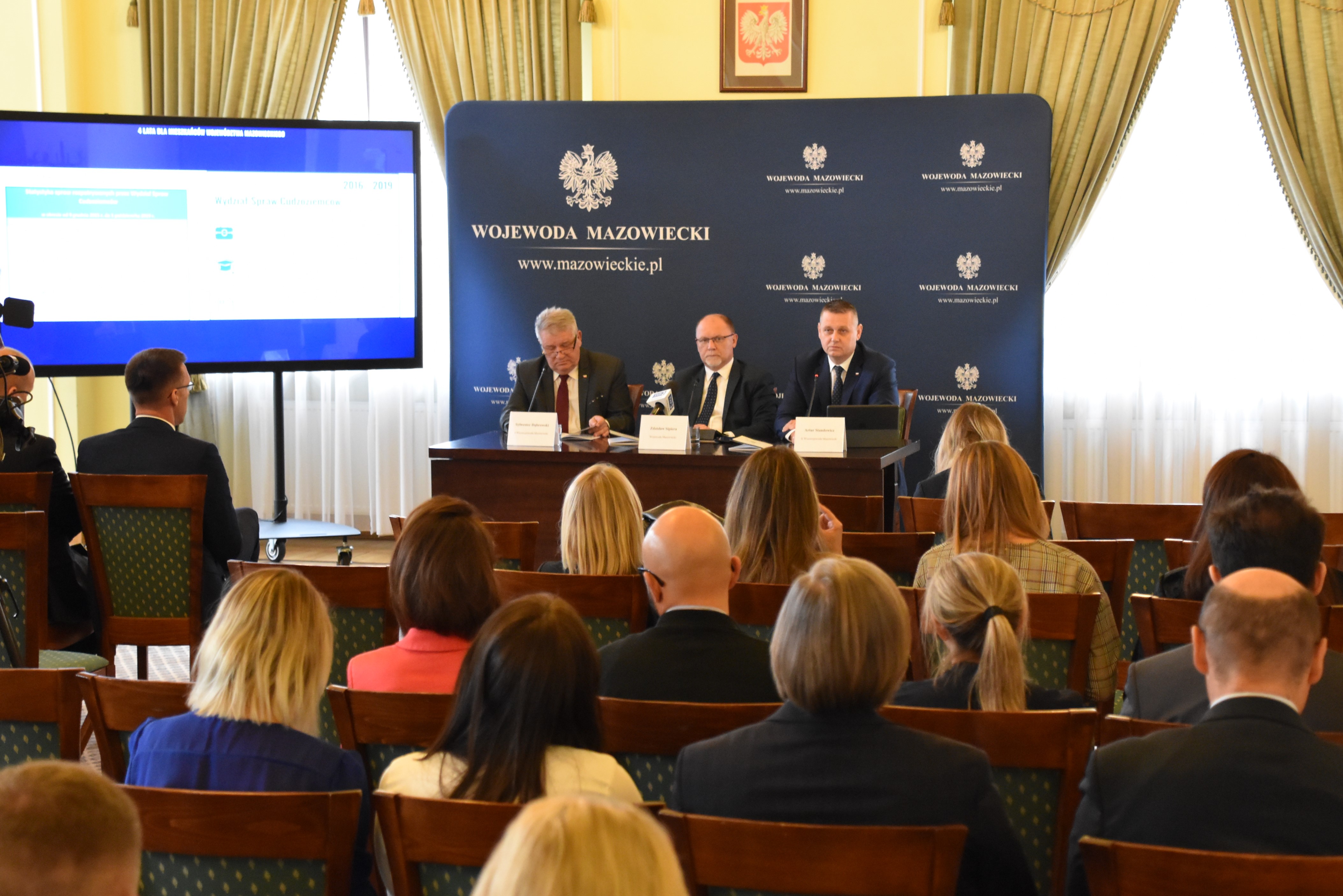 Wojewoda Mazowiecki Zdzisław Sipiera podczas konferencji prasowej wspólnie z Wicewojewodami Sylwestrem Dąbrowskim i Arturem Standowiczem podsumował 4 lata pracy dla mieszkańców Mazowsza. Wojewodowie zwrócili uwagę na zadania, które wykonywali jako reprezentanci rządu w województwie.