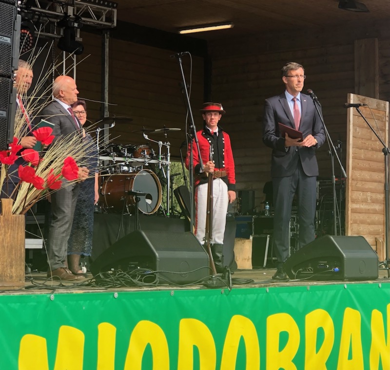 W dniach 26-27 sierpnia br. w Kurpiowskiej Krainie w Wydmusach, koło Myszyńca, odbyło się 46. Miodobranie Kurpiowskie. Na zaproszenie Burmistrza Myszyńca Elżbiety Abramczyk w wydarzeniu uczestniczyli: Wicestarosta Powiatu Ostrołęckiego Krzysztof Parzychowski oraz Kierownik Delegatury Mazowieckiego Urzędu Wojewódzkiego w Ostrołęce Marcin Grabowski, który podczas uroczystości odczytał list od Ministra Rolnictwa i Rozwoju Wsi skierowany do rolników oraz mieszkańców.