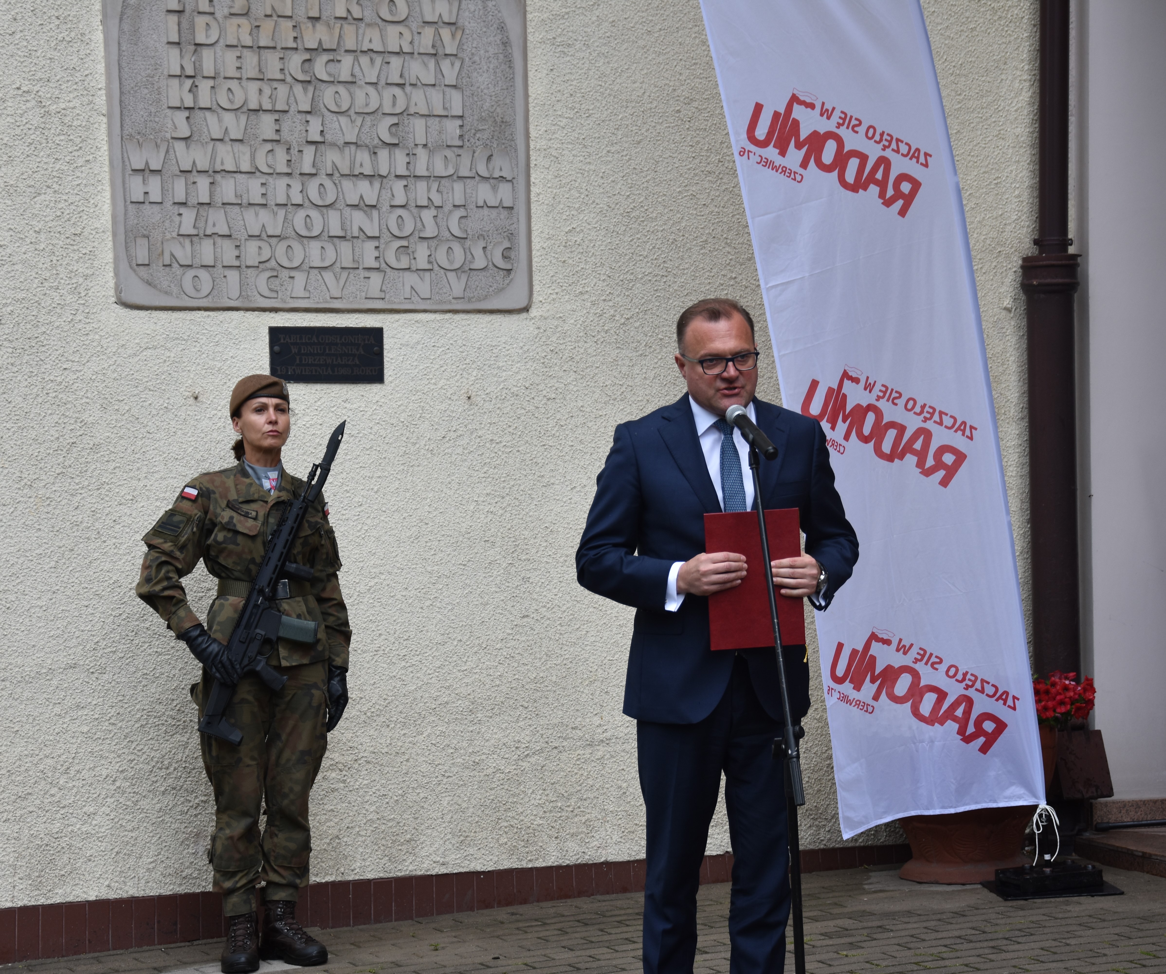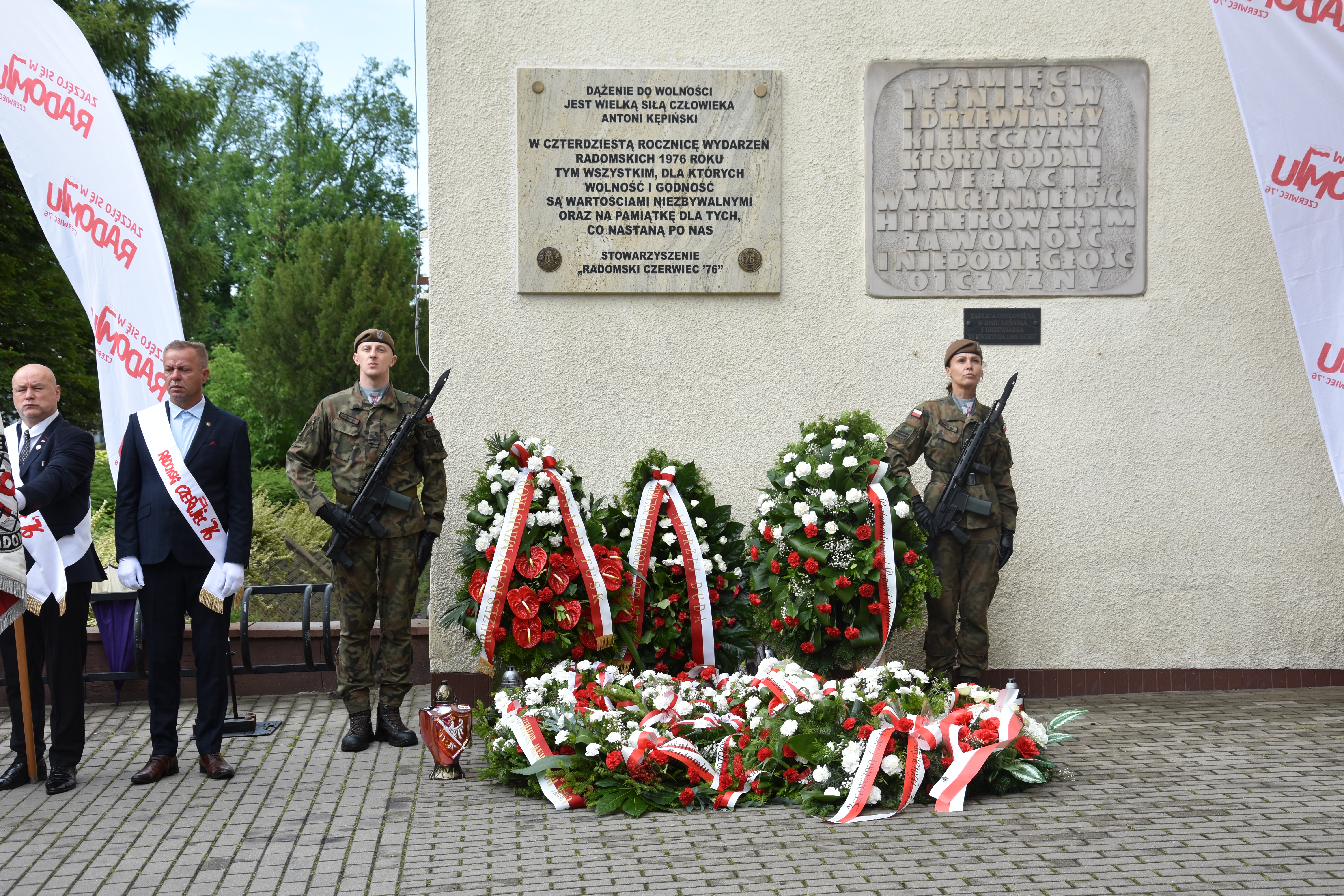 Następnie, u zbiegu ul. S. Żeromskiego i 25 Czerwca, mieszkańcy i zaproszeni goście oddali hołd Bohaterom. Przed pamiątkową tablicą wicewojewoda Patryk Fajdek i kierownik delegatury Mazowieckiego Urzędu Wojewódzkiego w Radomiu Rafał Molga złożyli kwiaty.