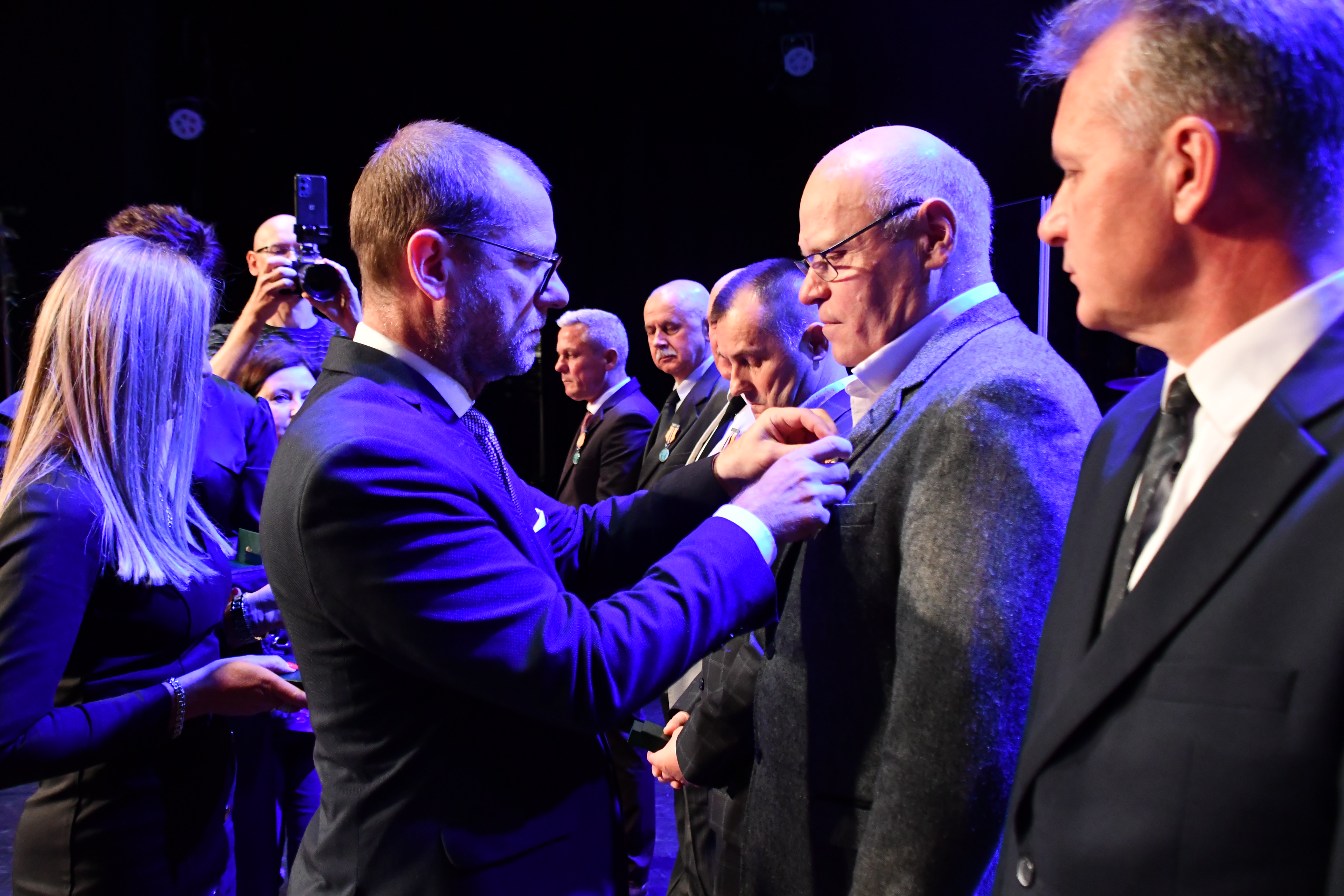 Następnie wicewojewoda wręczył, w imieniu Prezydenta RP Karola Nawrockiego, Złote Medale za Długoletnią Służbę oraz w imieniu ministra energii Miłosza Motyki – Odznaki Honorowe „Za Zasługi dla Energetyki”.