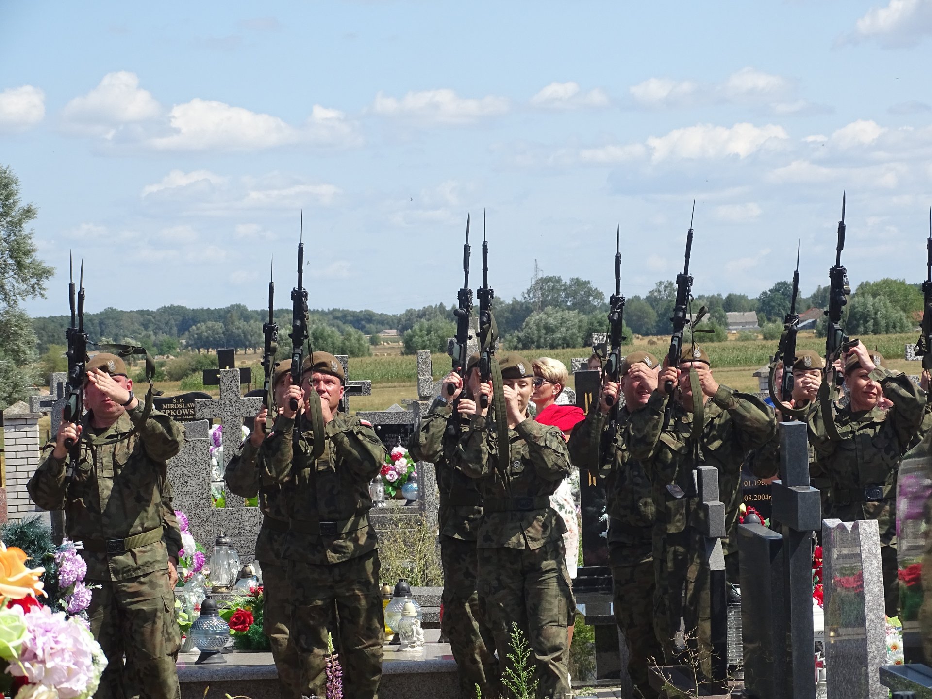 Dalsza część uroczystości odbyła się na cmentarzu parafialnym, gdzie wspominano żołnierzy AK oraz złożono wieńce. Przemawiając w imieniu rodzin pomordowanych, Zenon Żebrowski podkreślił: ,, Dzisiaj w wolnym, niepodległym Państwie my rodziny pomordowanych możemy stać z dumnie podniesioną głową przy grobach naszych bliskich”.