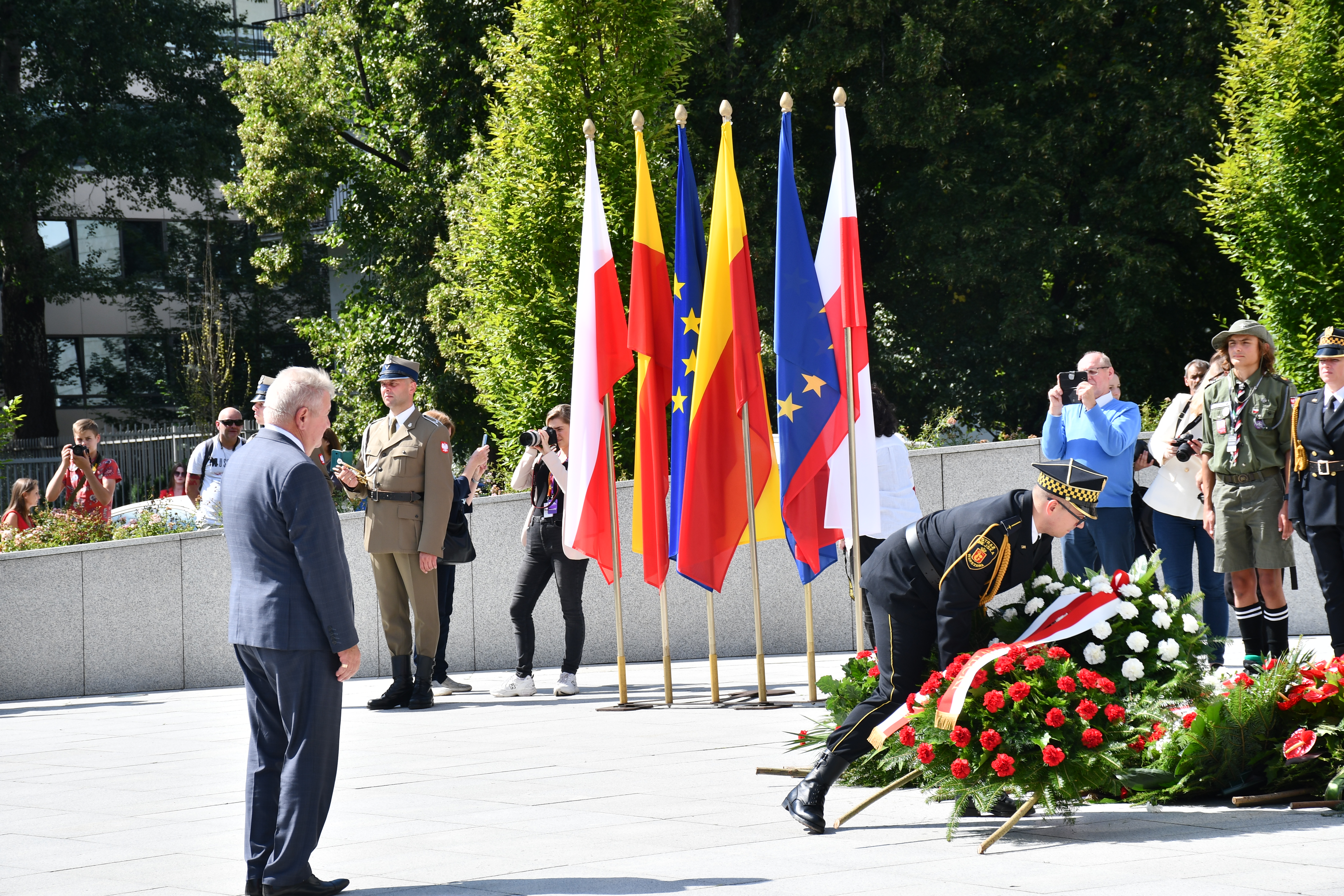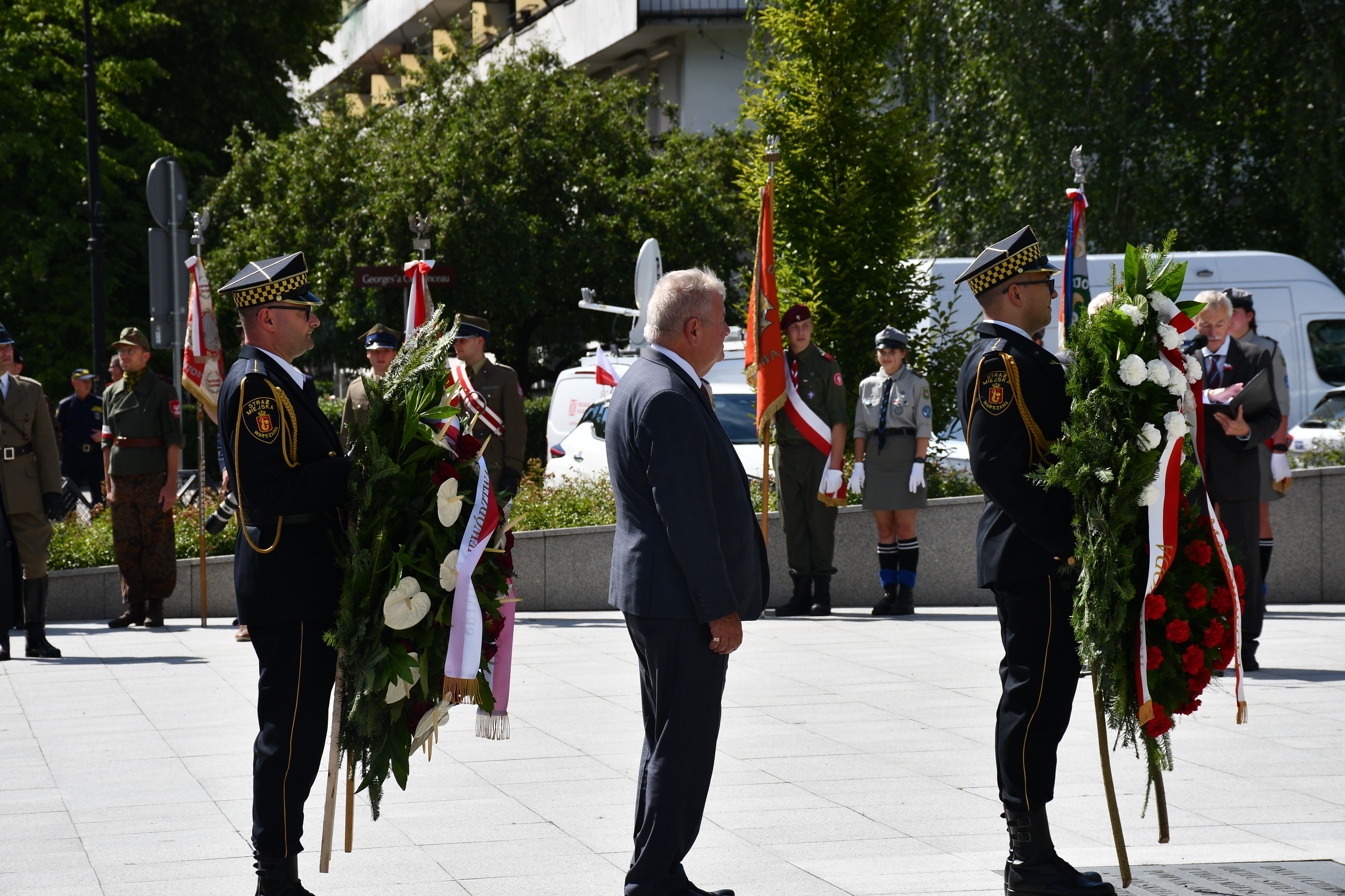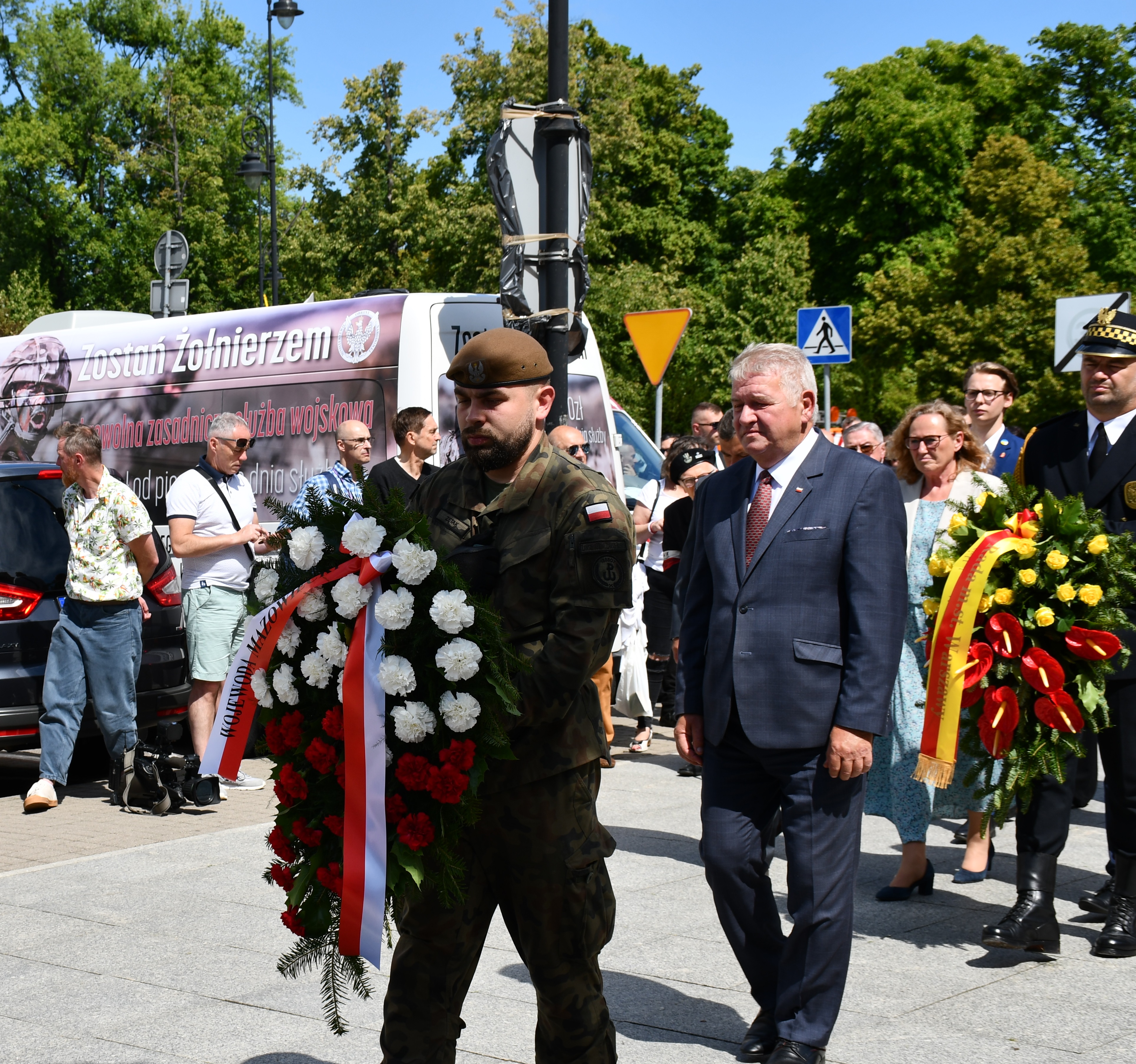 W ramach zorganizowanych obchodów 78. rocznicy Powstania Warszawskiego, Wicewojewoda Mazowiecki Sylwester Dąbrowski, 1 sierpnia br. złożył wieńce w imieniu Premiera RP Mateusza Morawieckiego. Wiązankę złożył przed pomnikiem Stanisława Jankowskiego „Agatona”, znajdującym się u zbiegu ulic Karowej i Browarnej w Warszawie. Następnie przed pomnikiem „Kobietom Powstania Warszawskiego” przy pl. Krasińskich i przed pomnikiem generała Zbigniewa Ścibor-Rylskiego „Motyla”, który zlokalizowany jest w Parku im. Marszałka Edwarda Rydza-Śmigłego. Wicewojewoda Dąbrowski złożył wieniec również przed pomnikiem generała Stefana Roweckiego „Grota” oraz przed pomnikiem „Polskiego Państwa Podziemnego i Armii Krajowej” i pod tablicą upamiętniającą barykadę powstańczą.