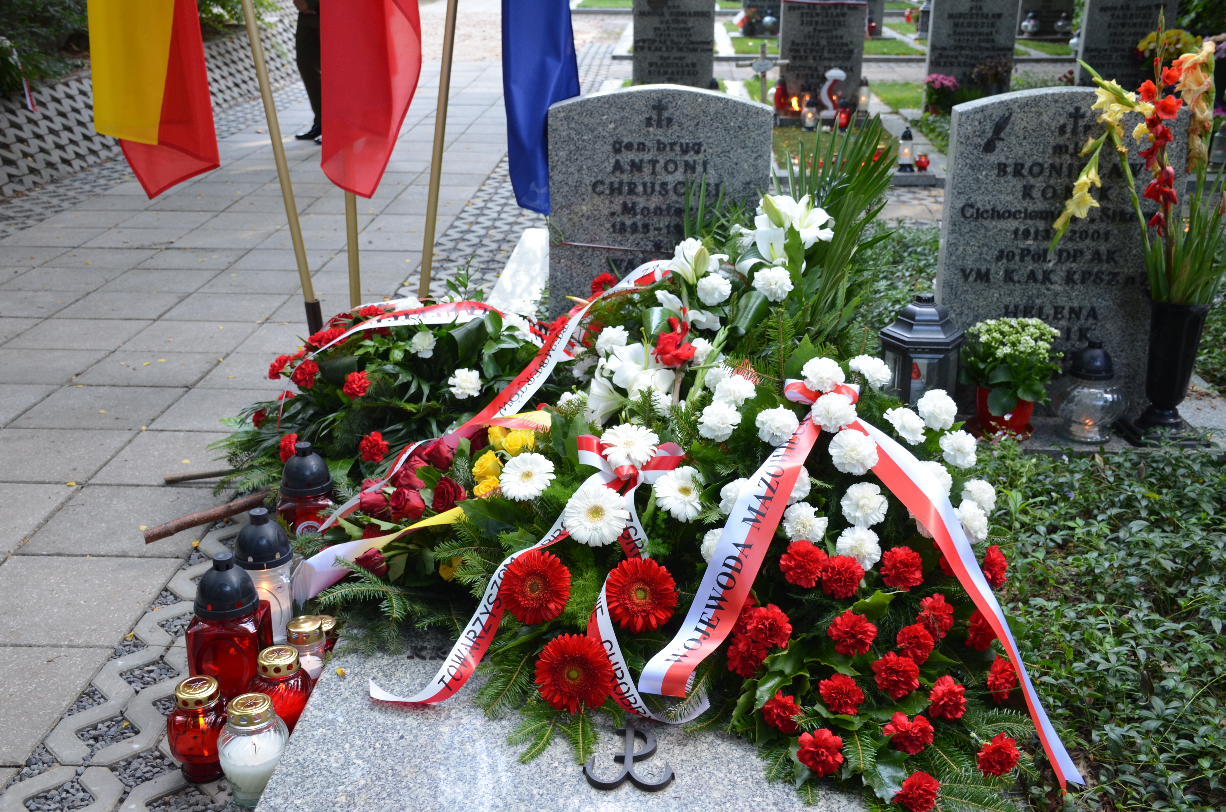 W godzinach popołudniowych, Wojewoda Mazowiecki Konstanty Radziwiłł złożył wieńce przy grobie generała Antoniego Chruściela „Montera” i przed grobem prof. Jerzego Majkowskiego oraz uczestniczył w uroczystościach przed pomnikiem „Gloria Victis” na Cmentarzu Wojskowym na Powązkach, gdzie został oddany hołd powstańcom w godzinę „W”. Następnie złożył wieniec przed pomnikiem „Polegli-Niepokonani” na Cmentarzu Powstańców Warszawy na Woli oraz wziął udział w modlitwie międzyreligijnej na kurhanie, w którym znajdują się prochy ponad 50 tys. mieszkańców stolicy, którzy stracili życie w Powstaniu Warszawskim.