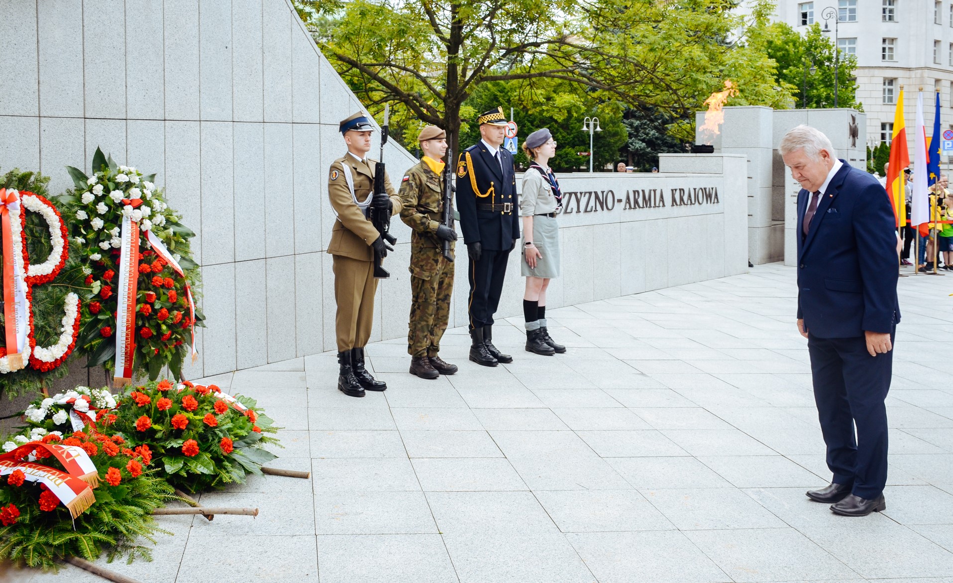 – 79 lat temu ten plac widział jedne z najstraszniejszych wydarzeń powstania warszawskiego, dlatego właśnie tutaj znajduje się pomnik upamiętniający czyn powstańczy – powiedział Prezydent RP Andrzej Duda podczas przemówienia. (...) Nigdy wcześniej i nigdy potem nie doszło do takiego powstania miejskiego – dodał Prezydent.