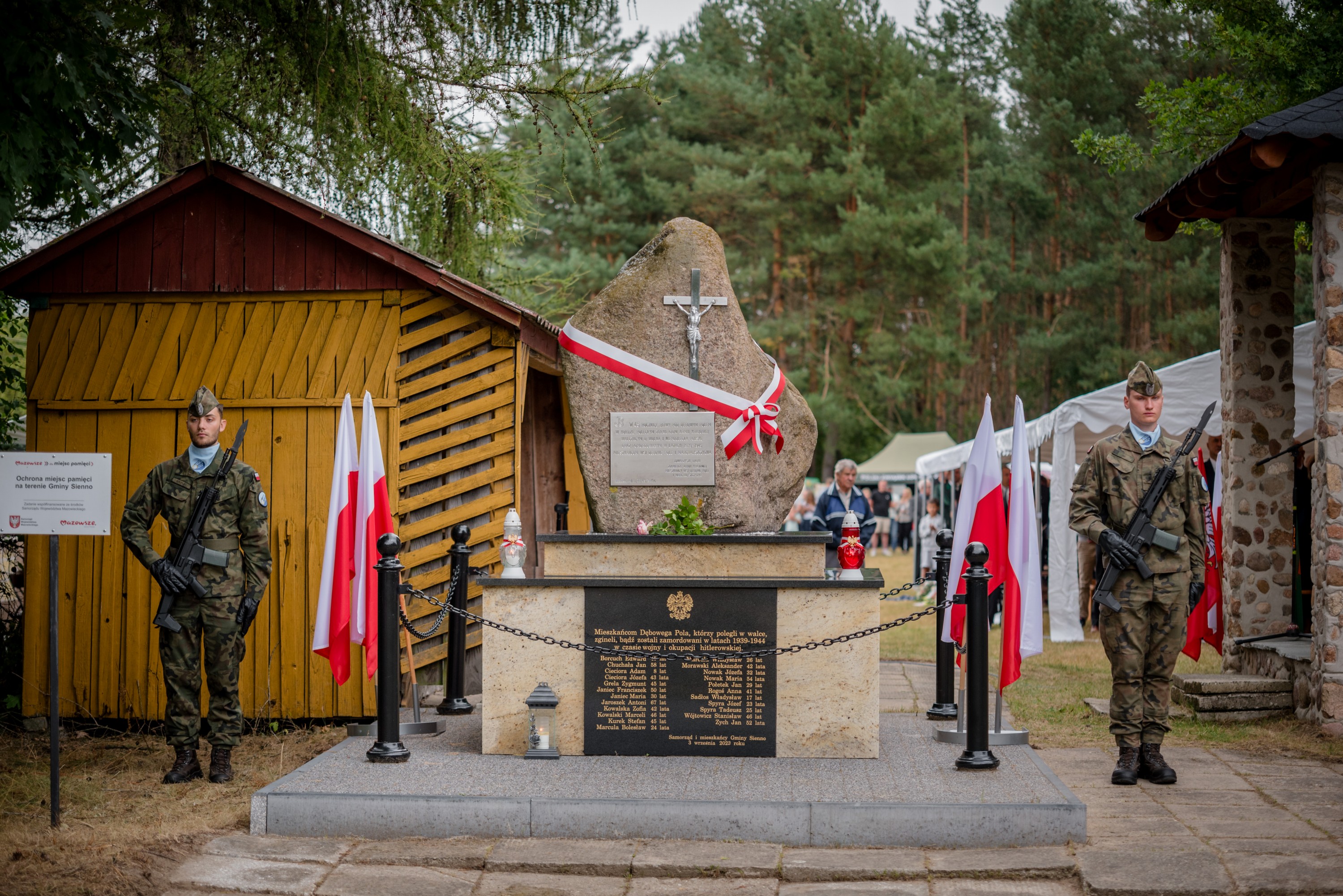 Apel Pamięci z udziałem Kompanii Wojska Polskiego z 42. Bazy Lotnictwa Szkolnego w Radomiu i Orkiestry Dętej z Sienna, poprzedził złożenie wieńców i kwiatów pod pomnikiem ku czci ludności cywilnej i żołnierzy Armii Krajowej. To właśnie oni w sierpniu 1944 roku stoczyli bitwę pod Dębowym Polem - Margrabszczyzną, z niemieckimi oddziałami wojskowymi w obronie miejscowej ludności cywilnej.