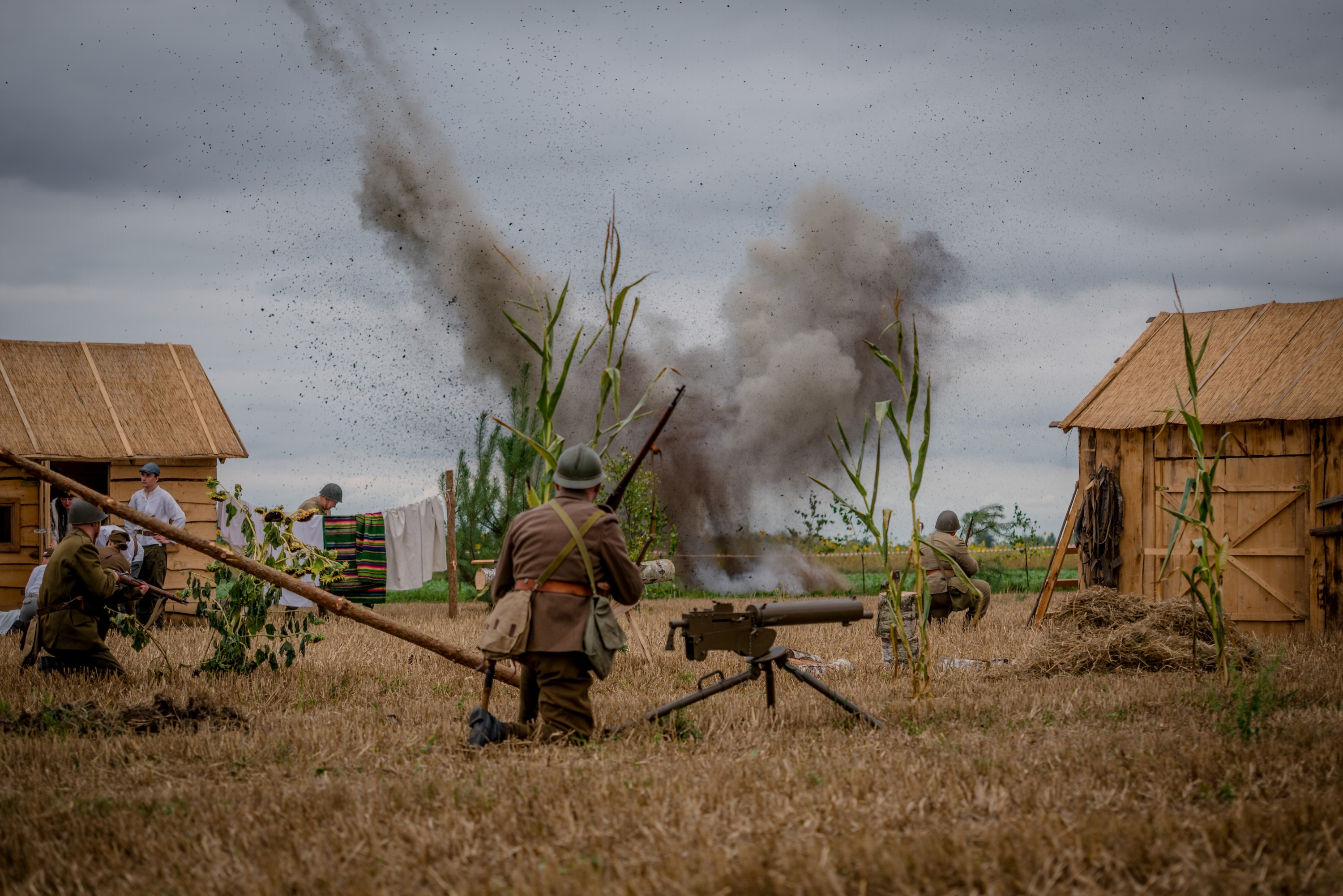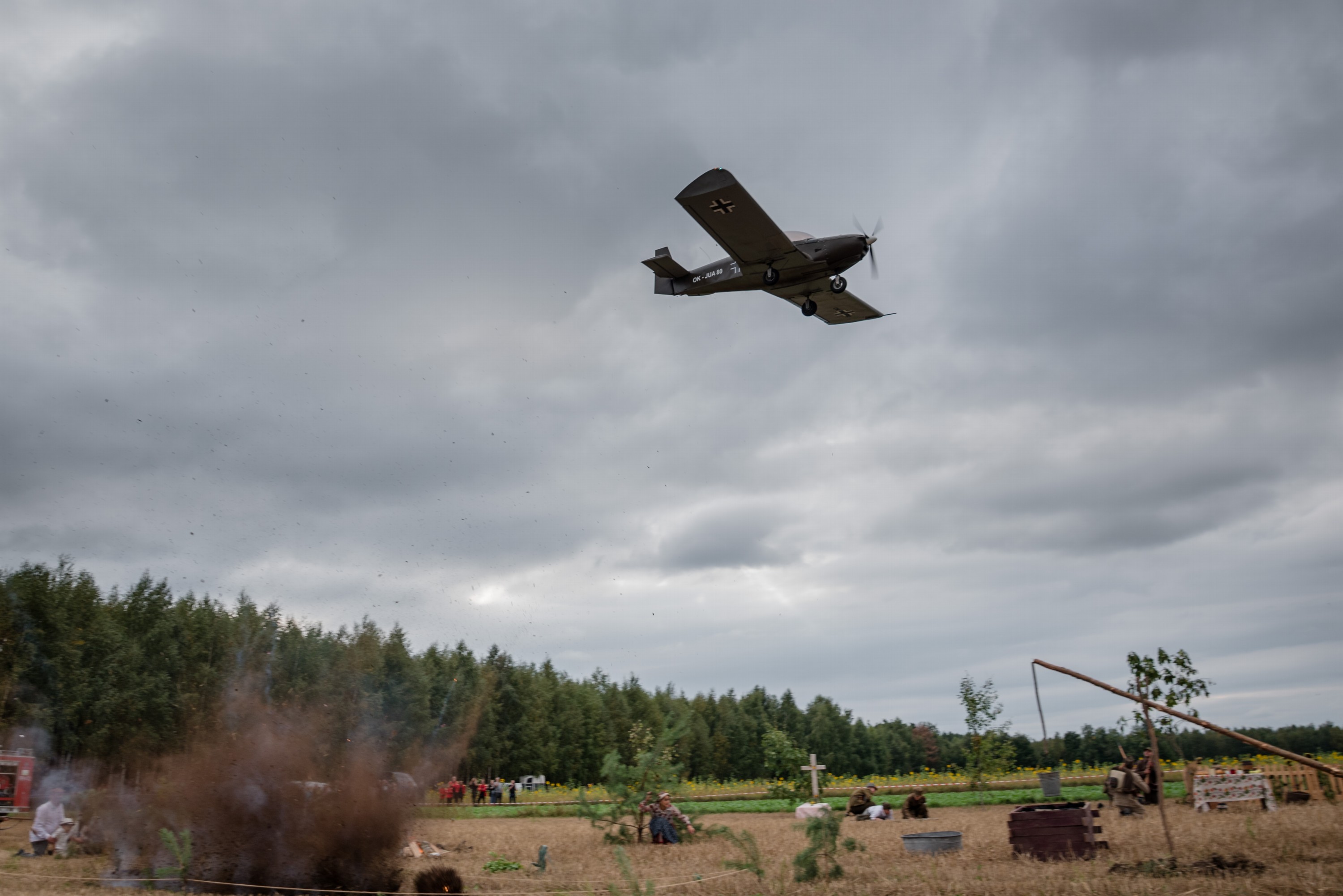Po oficjalnych uroczystościach, które odbyły się w ceremoniale wojskowym miała miejsce inscenizacja tragicznych wydarzeń z udziałem grupy rekonstrukcyjnej, samolotów i sprzętu wojskowego.