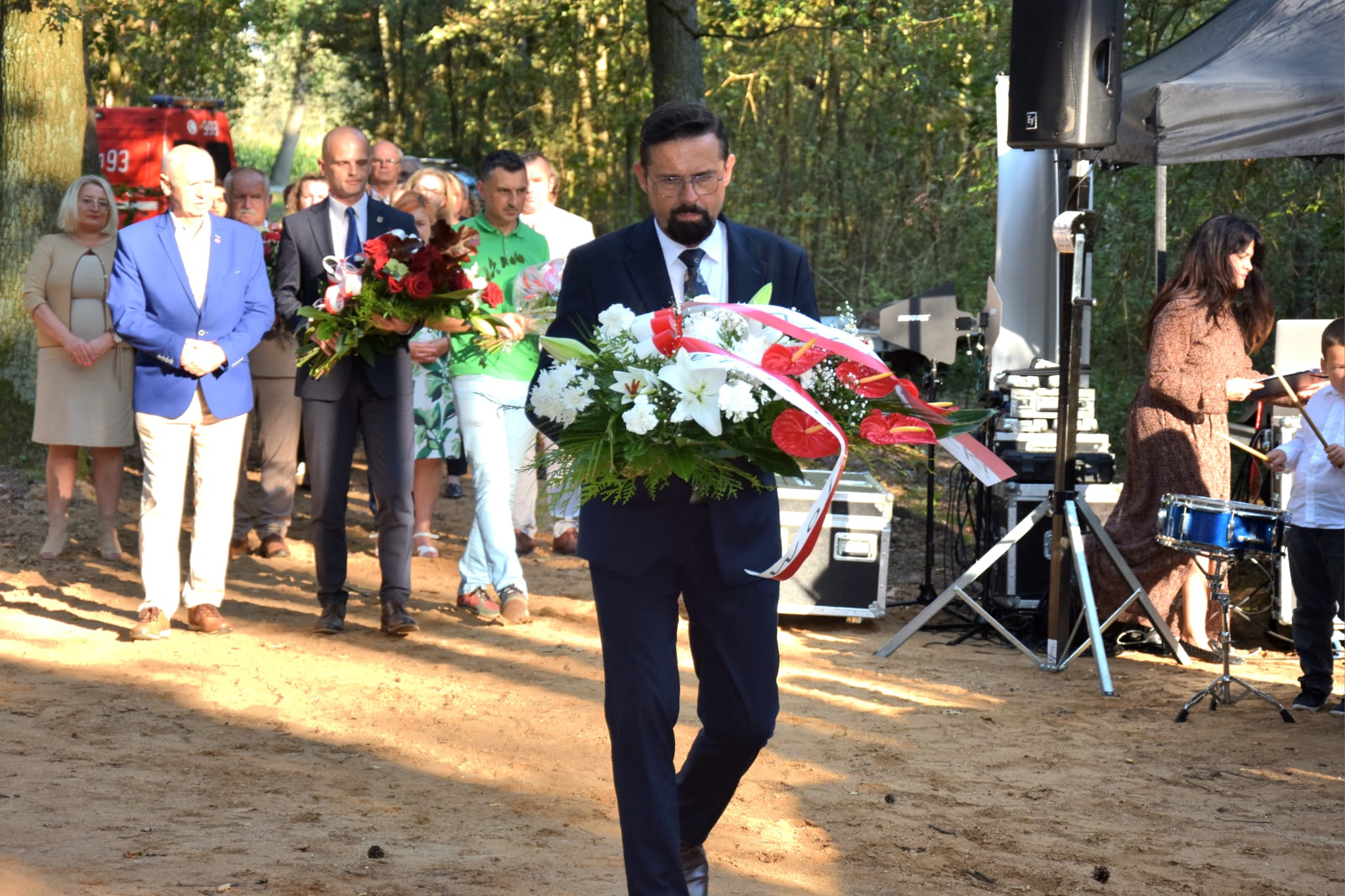 W poniedziałkowej uroczystości wzięła udział licznie zgromadzona społeczność lokalna, poczty sztandarowe, a także delegacje, które złożyły kwiaty. Wyjątkowego charakteru wydarzeniu dodało patriotyczne widowisko artystyczne przygotowane przez harcerzy ze szkół w Łęgu Probostwie i w Drobinie. Zwieńczeniem była polowa msza święta w intencji poległych żołnierzy i Ojczyzny.