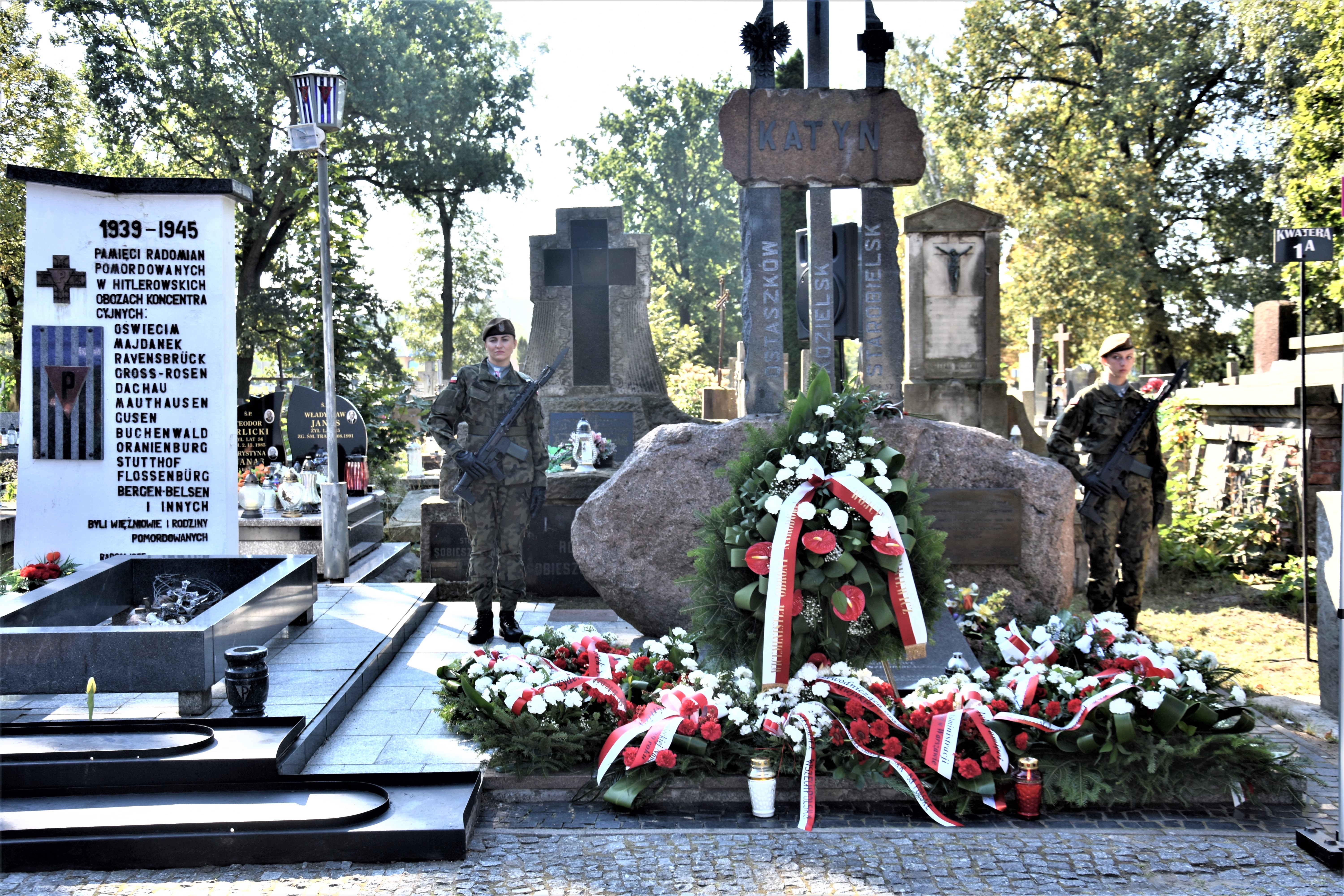 Następnie złożono wieńce i zapalono znicze pod pomnikiem zamordowanych przez NKWD, zwanym „Katyńskim” oraz pomnikiem upamiętniającym „Sybiraków” i więźniów politycznych, którzy zginęli lub zostali zamordowani w imię komunistycznej ideologii w latach 1939-1956. W imieniu Wojewody Mazowieckiego Tobiasza Bocheńskiego wieńce w miejscach pamięci złożył Kierownik Delegatury Mazowieckiego Urzędu Wojewódzkiego w Radomiu Krzysztof Murawski.