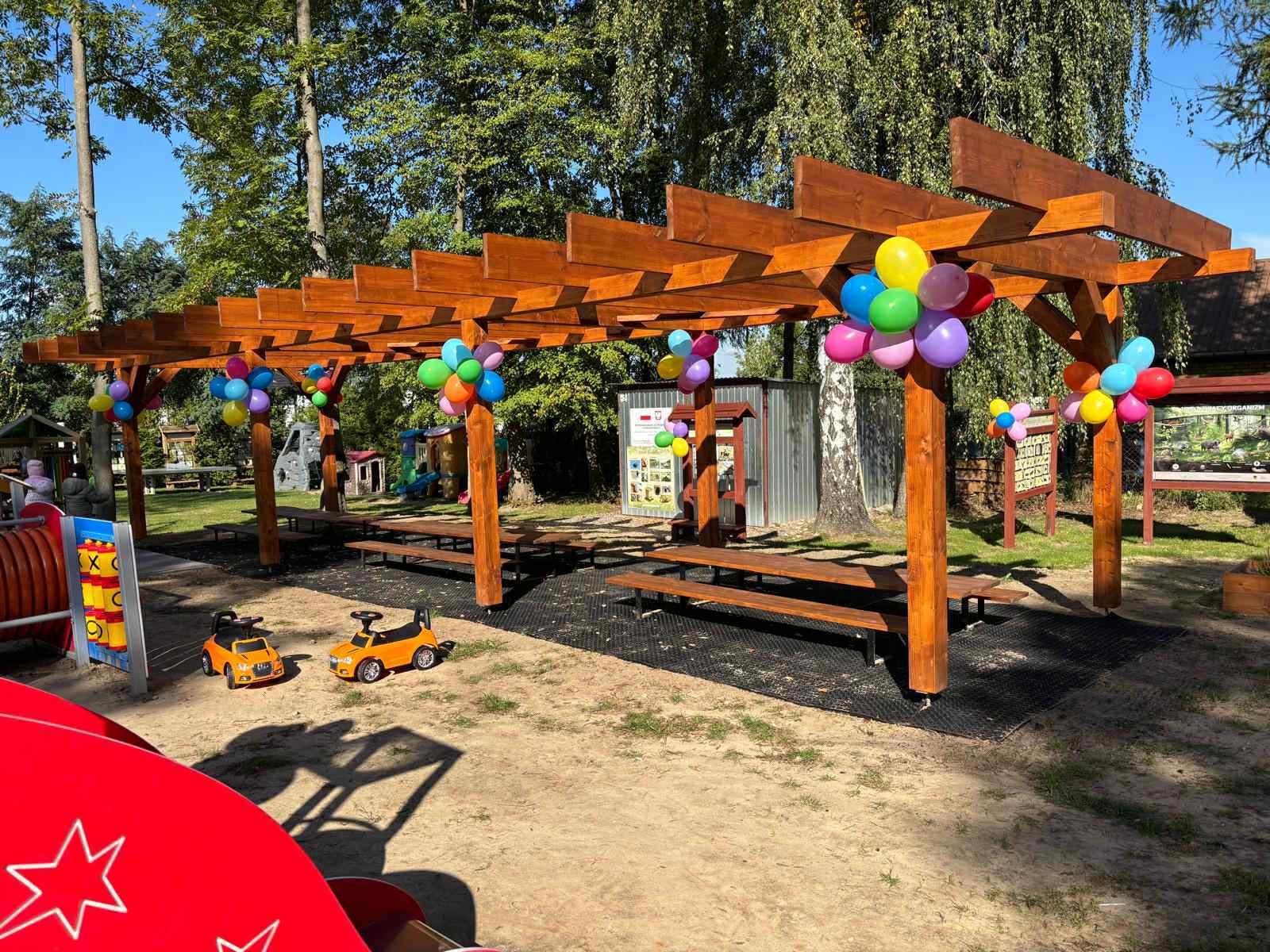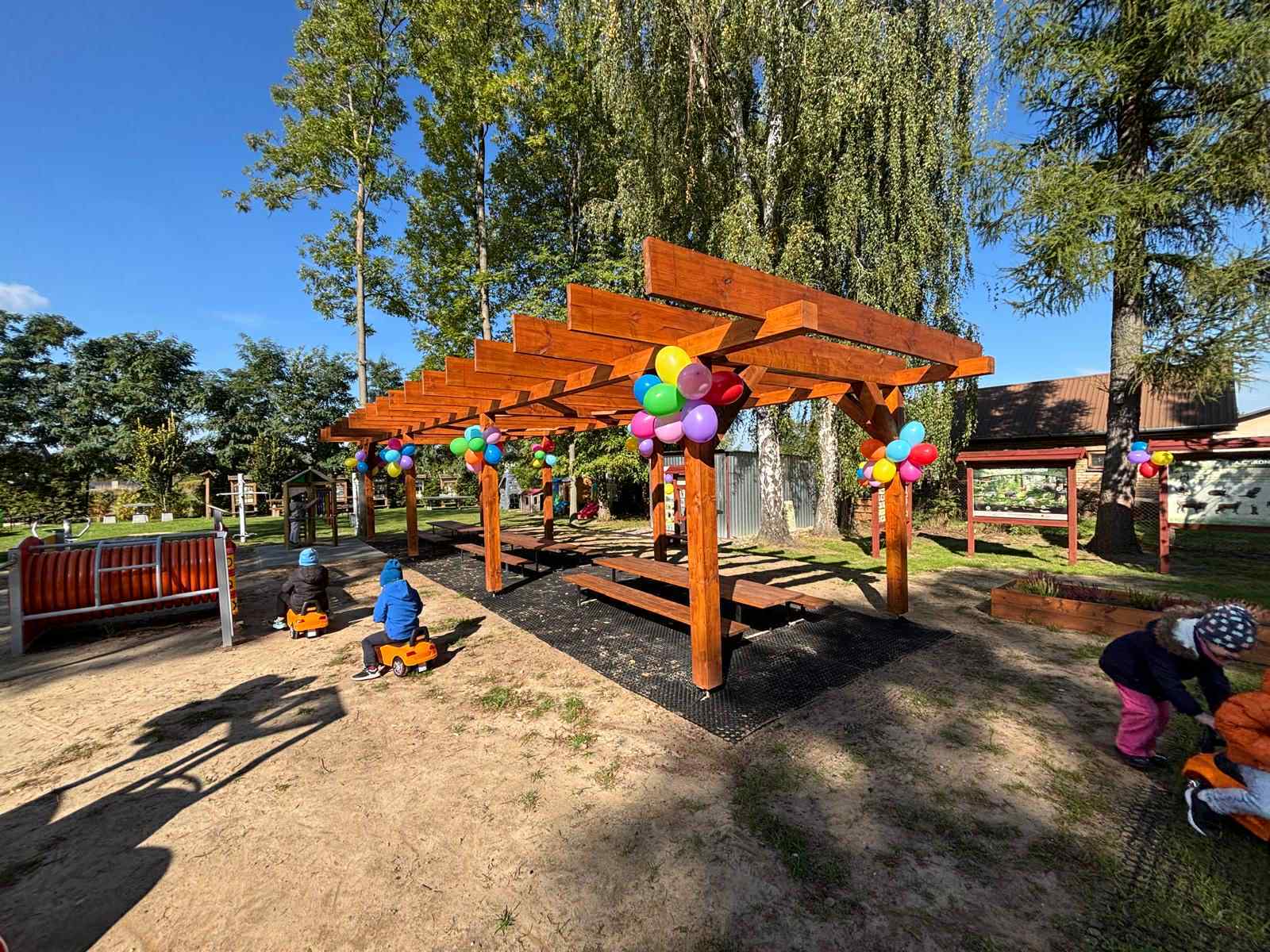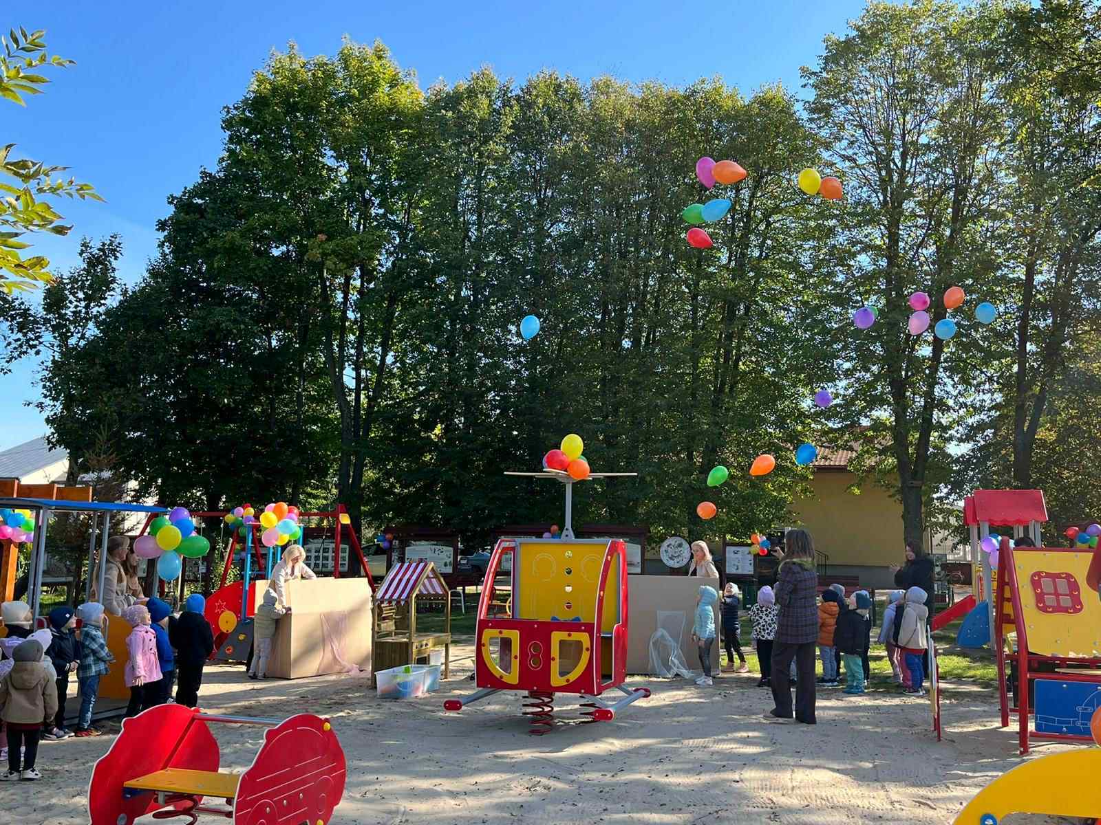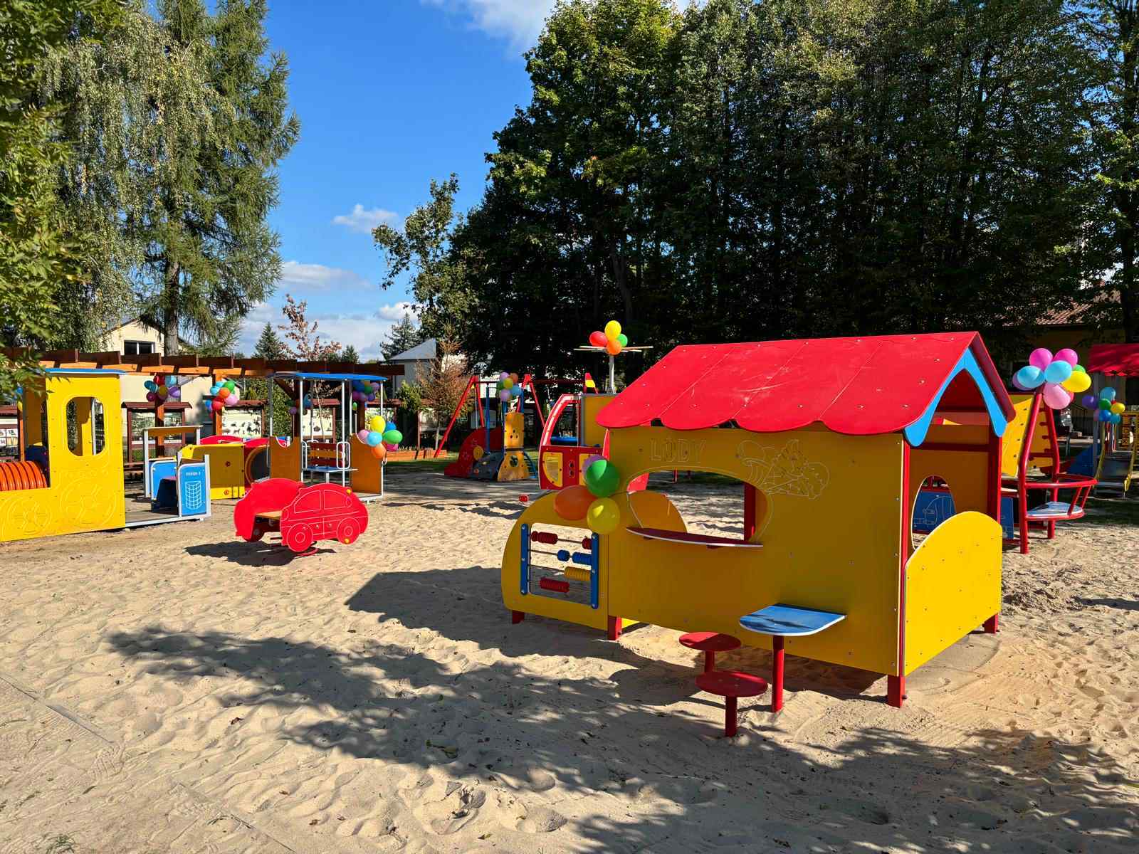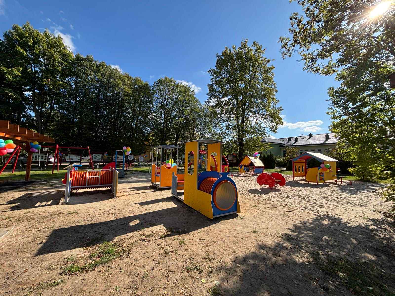 W ramach zadania polegającego na przebudowie placu zabaw wykonano m.in. rozbiórkę starych, zniszczonych elementów, montaż nowej małej architektury i zestawów zabawowych, budowę płyty do rysowania kredą, instalację piaskownicy, zakup pomocy dydaktycznych i ruchowych do pracy z dziećmi, zagospodarowanie terenu wokół placu.