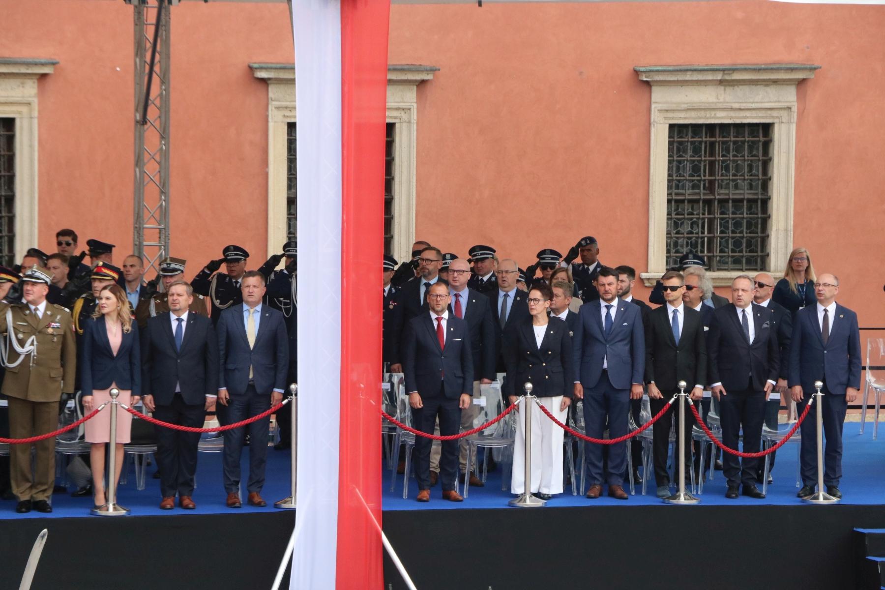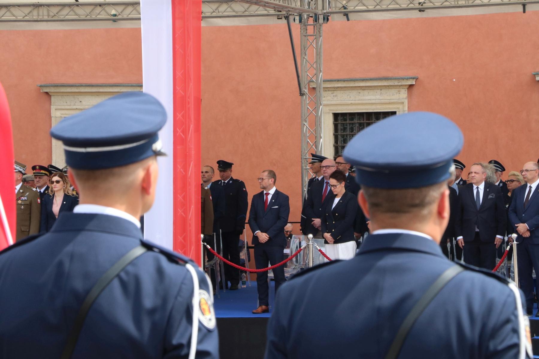 W trakcie wydarzenia zaprezentowano poczty sztandarowe jednostek organizacyjnych Policji, Straży Granicznej, Państwowej Straży Pożarnej i Służby Ochrony Państwa.