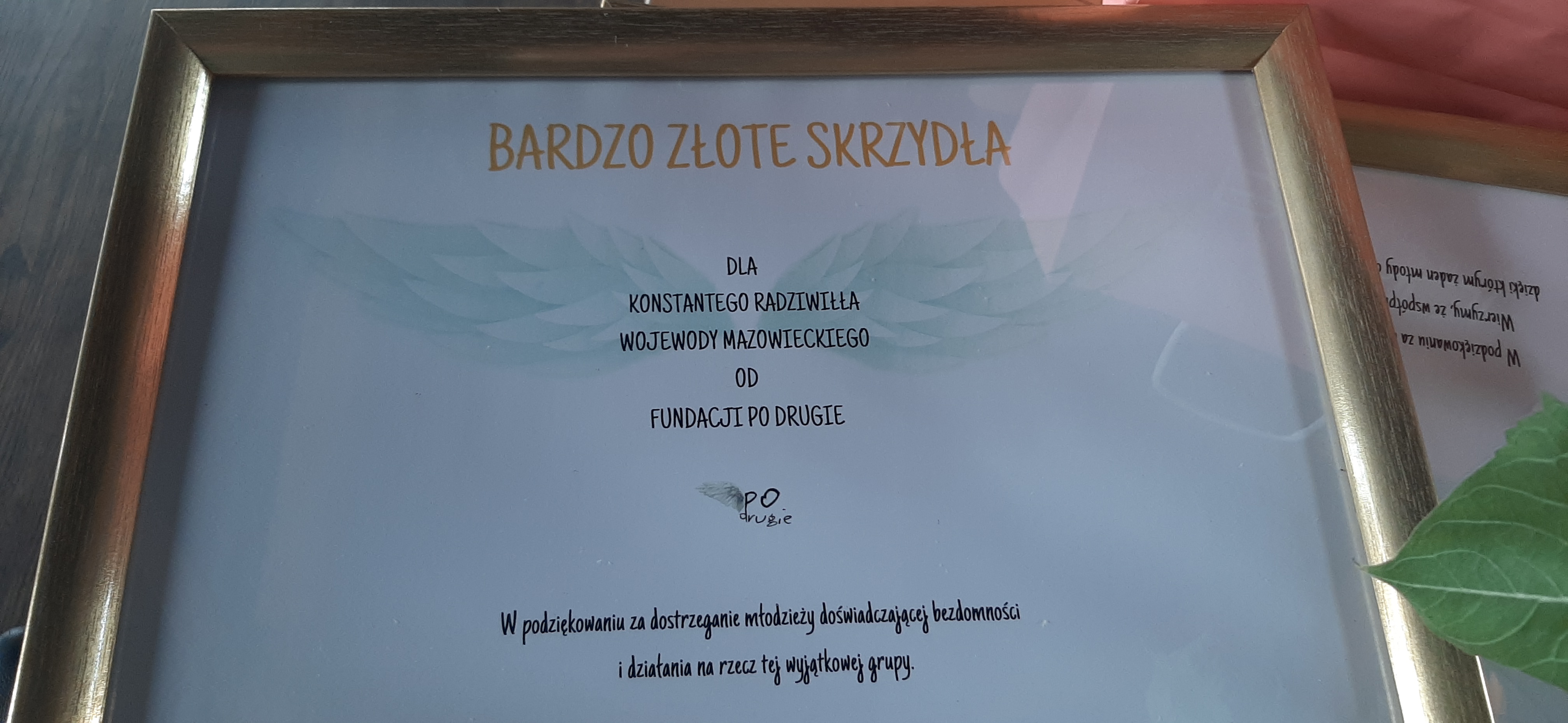 Z okazji jubileuszu 10-lecia działalności Fundacja Po DRUGIE wręczyła we wtorek 22 czerwca 2021 roku podziękowania instytucjom i osobom, dzięki którym możliwe jest realizowanie projektów na rzecz młodzieży i młodych dorosłych zagrożonych wykluczeniem społecznym i kryzysem bezdomności. Symboliczne "Bardzo Złote Skrzydła" otrzymał Wojewoda Mazowiecki Konstanty Radziwiłł, a także Mazowiecki Urząd Wojewódzki w Warszawie.