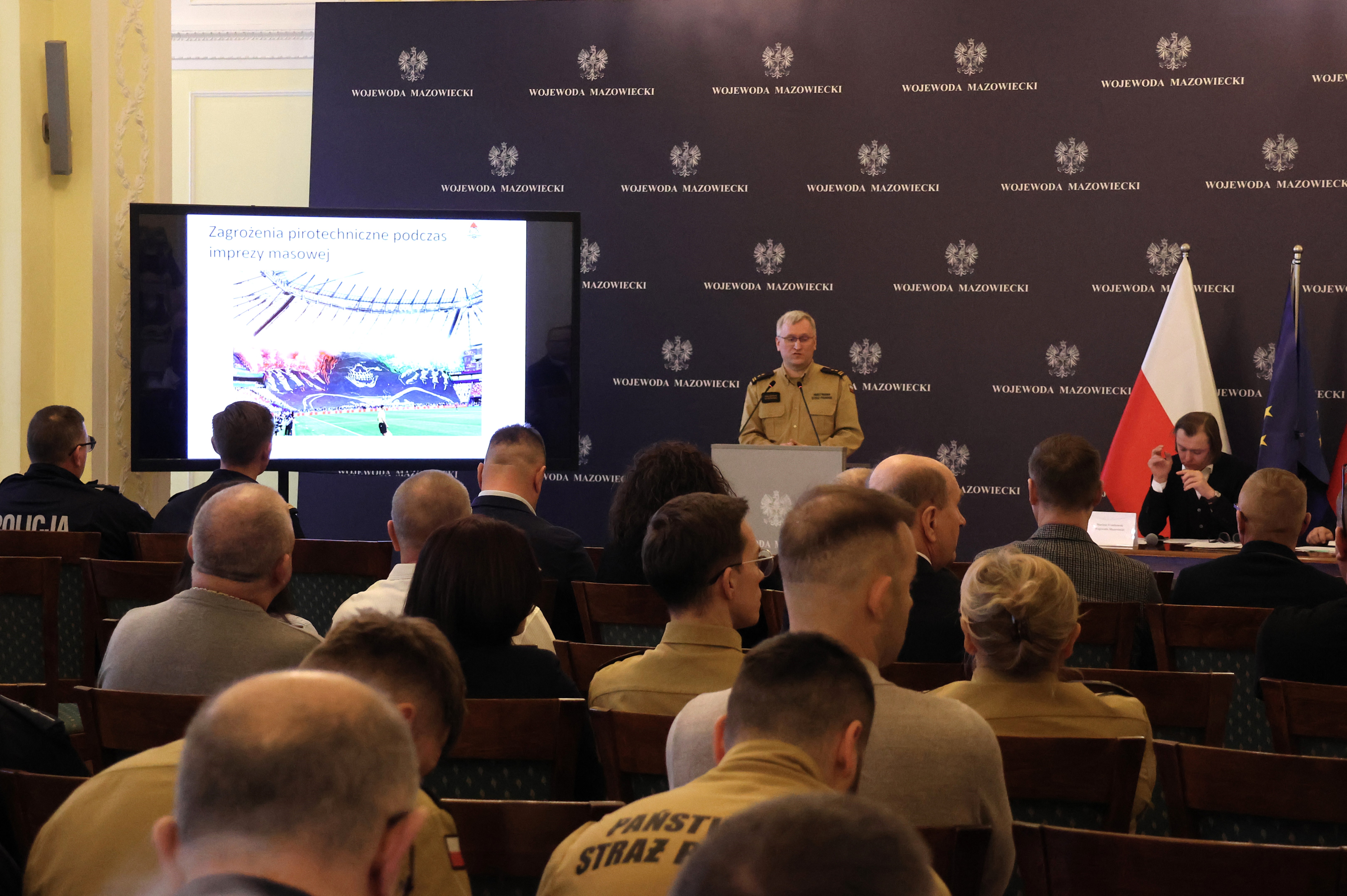 Wojewoda mazowiecki Mariusz Frankowski zaapelował o bieżącą współpracę z Wojewódzkim Centrum Zarządzania Kryzysowego. Wskazał, że współpraca między służbami a środowiskami sportowymi i organizatorami imprez jest kluczem do sukcesu, i zachęcił do stosowania dobrych praktyk – w tym organizowania odpraw przed imprezami o podwyższonym ryzyku, wymiany informacji oraz przestrzegania własnych regulaminów i planów zabezpieczenia, także w przypadku wydarzeń, które formalnie nie są zaklasyfikowane jako imprezy masowe.