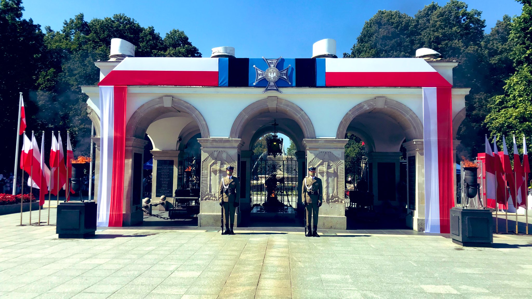 Przed grobem Nieznanego Żołnierza w Warszawie w południe odbyła się uroczysta odprawa wart – główna uroczystość przypadającego 15 sierpnia Święta Wojska Polskiego w 100. rocznicę Bitwy Warszawskiej.