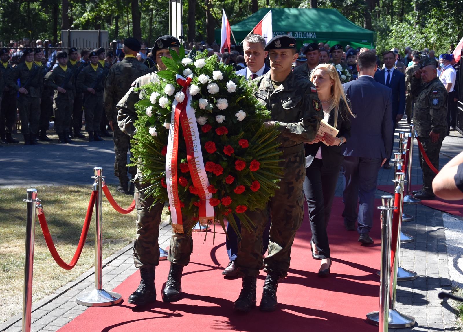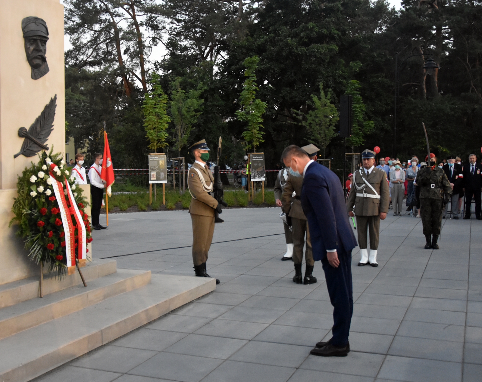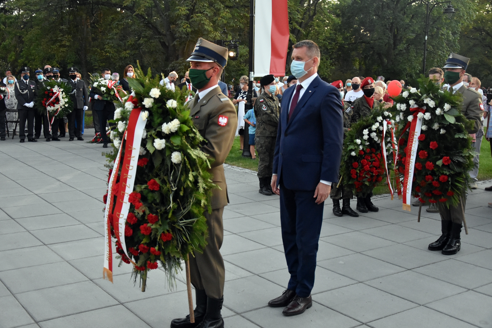 W trakcie uroczystości Wojewoda Konstanty Radziwiłł złożył w imieniu Prezdenta RP Andrzeja Dudy i Prezesa Rady Ministrów Mateusza Morawieckiego wieniec na bratnich mogiłach Cmentarza Żołnierzy Polskich 1920 r.
